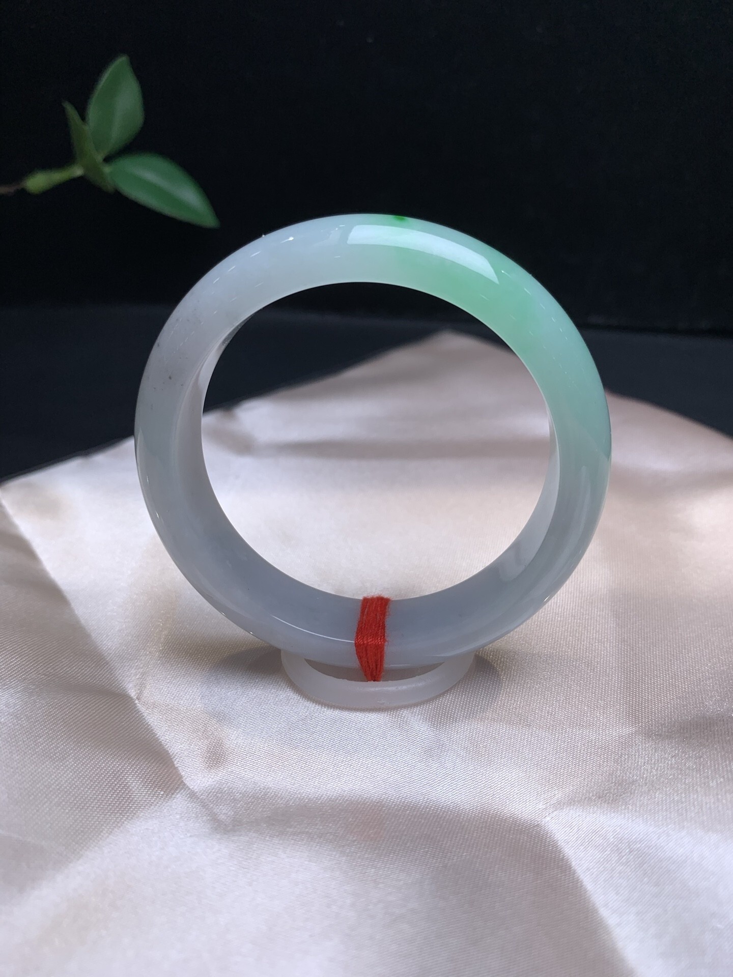 天然翡翠A玉,春風十里,不如腕間一抹翠,上手清新脫俗,局部帶一些烏雞點。無裂紋。