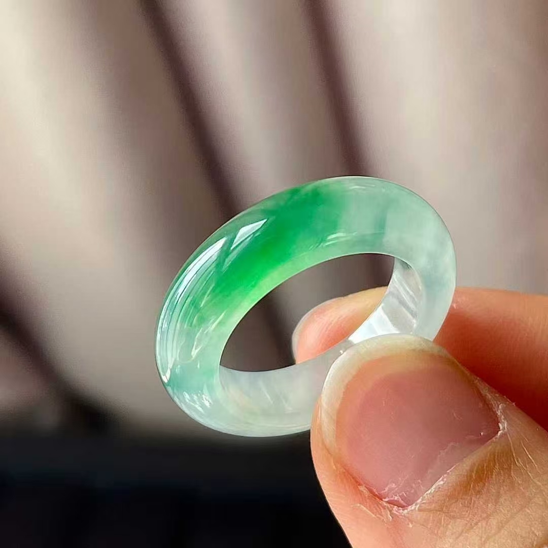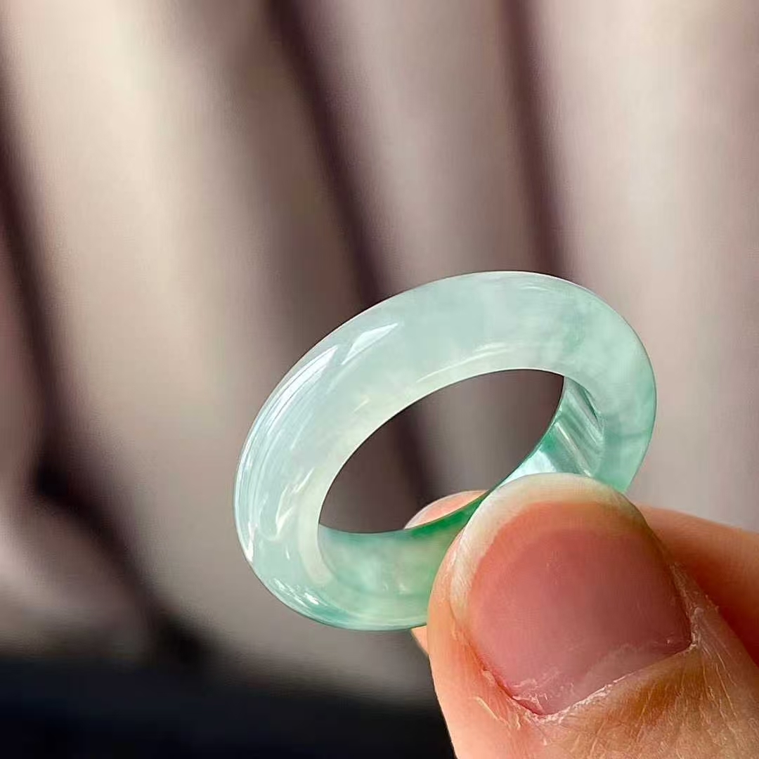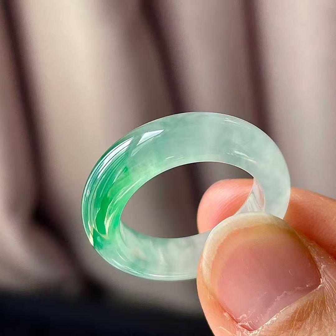 11105543 翡翠冰種飄綠指環