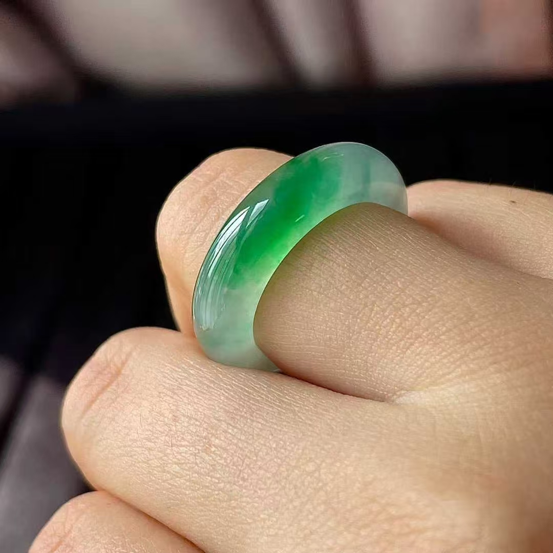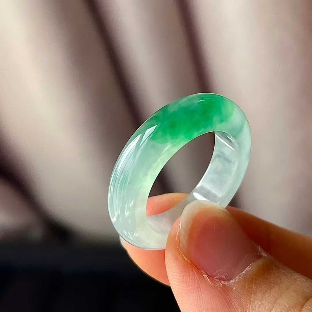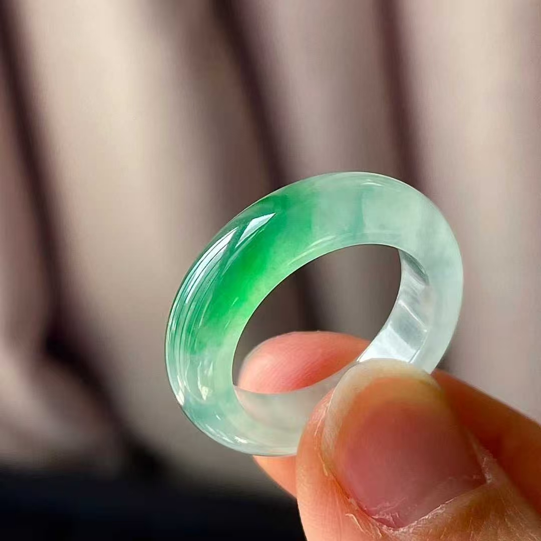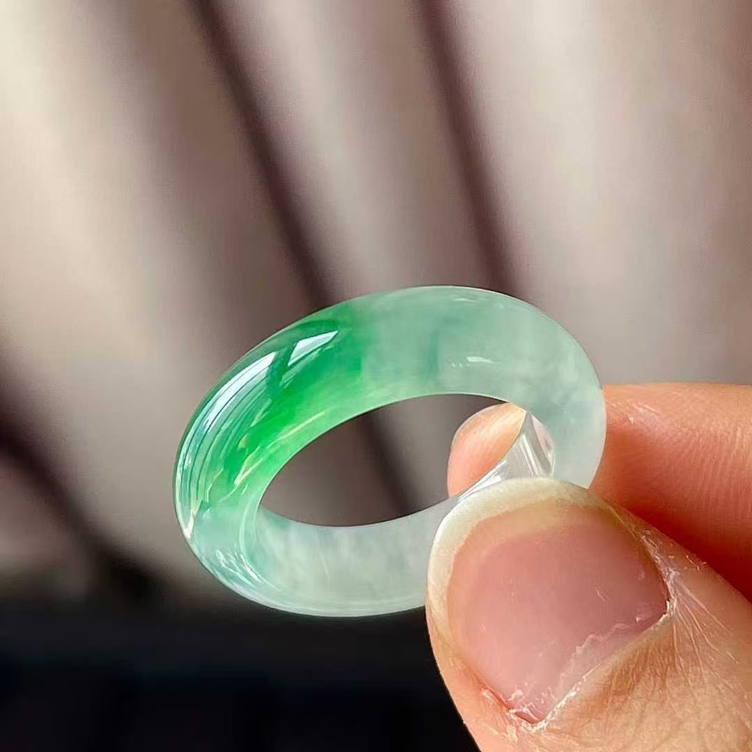 11105543 翡翠冰種飄綠指環