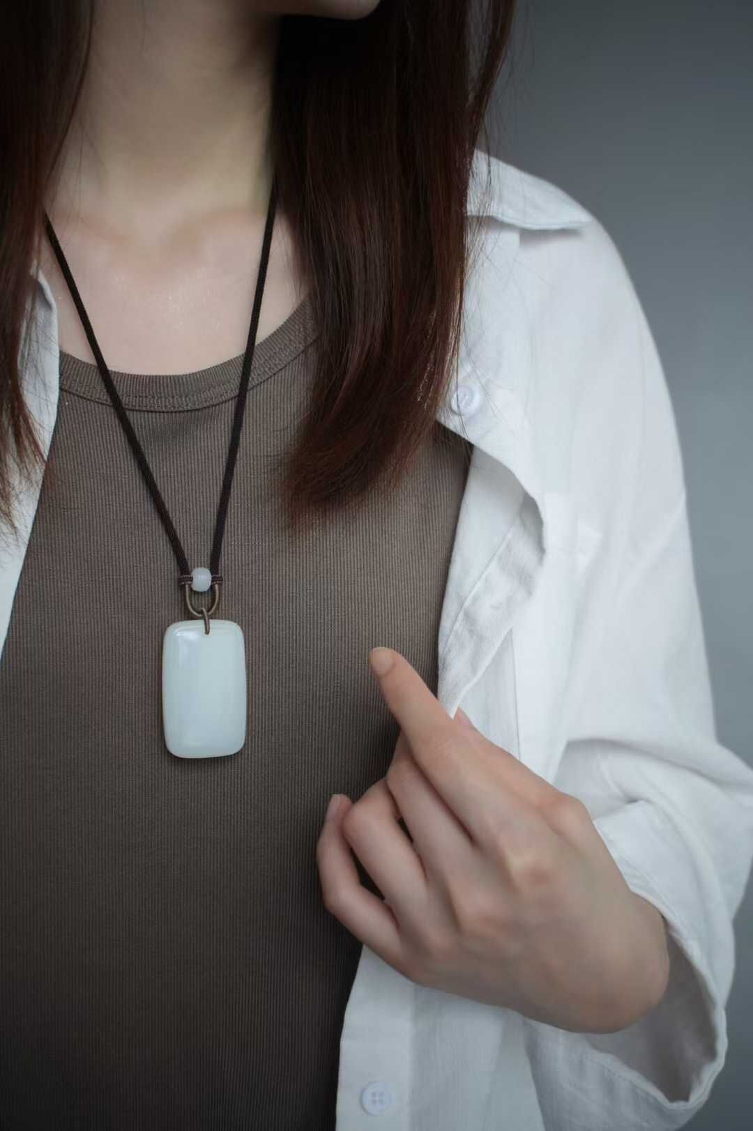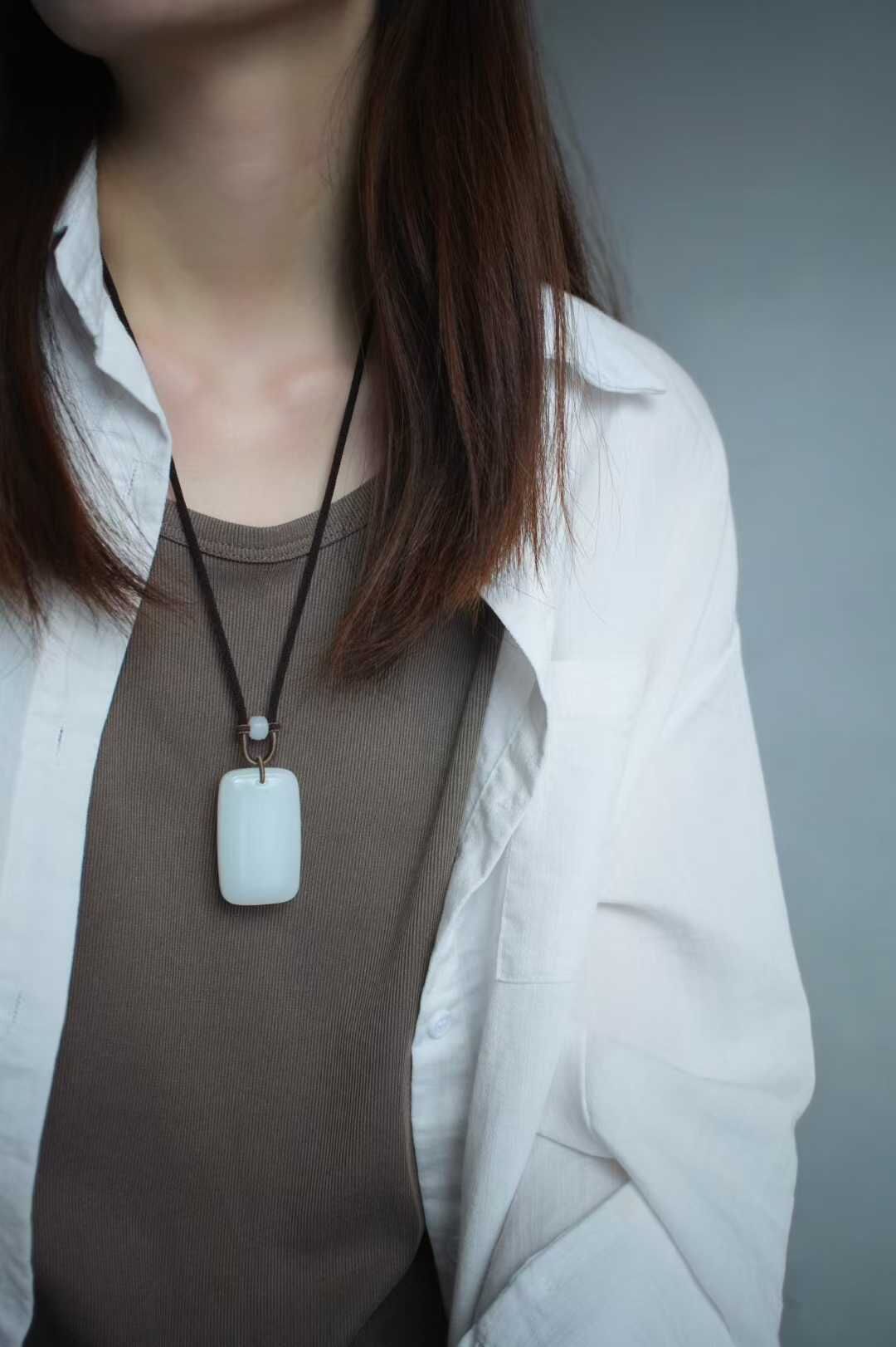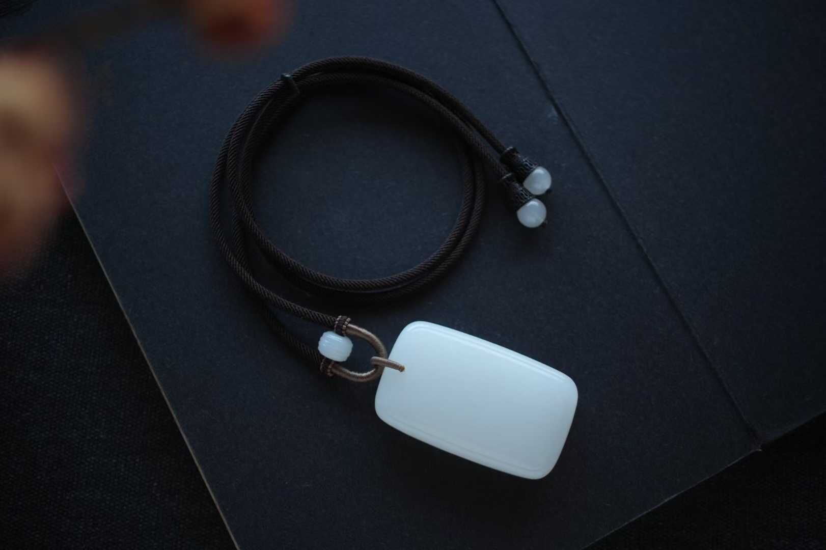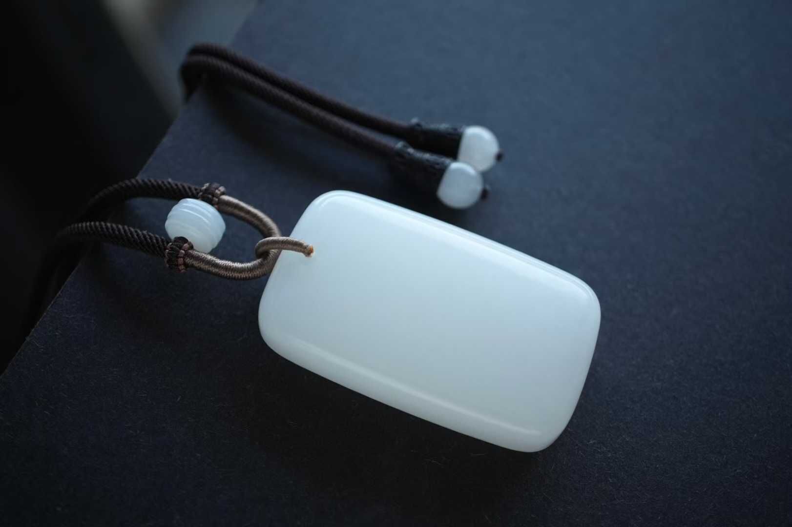 • 和田玉羊脂玉平安無事牌掛件,天然和田玉軟玉