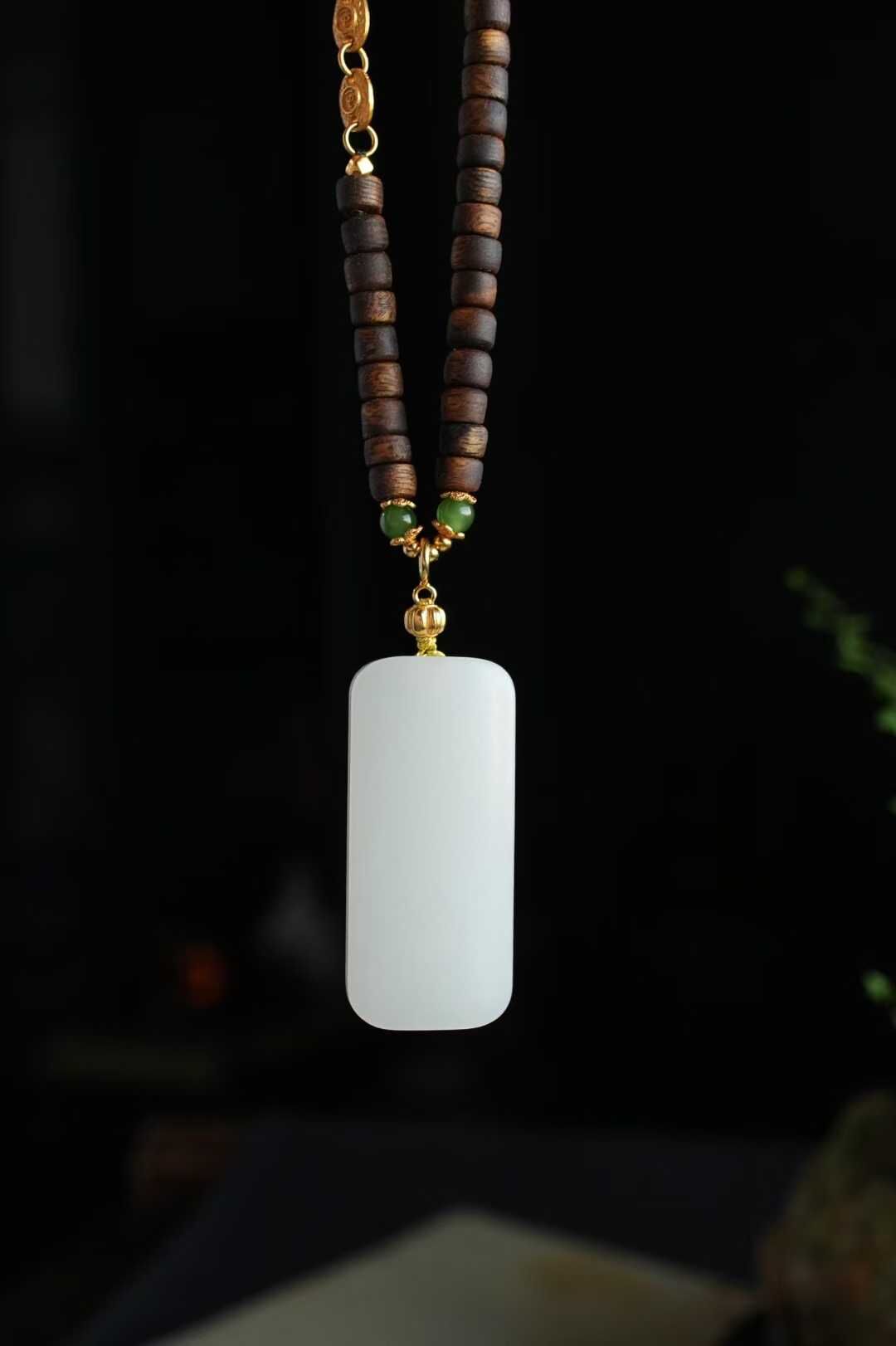 • 和田玉羊脂玉平安無事牌掛件項鏈手鏈三用款,天然和田玉軟玉