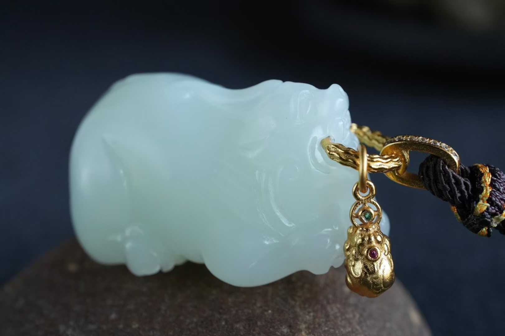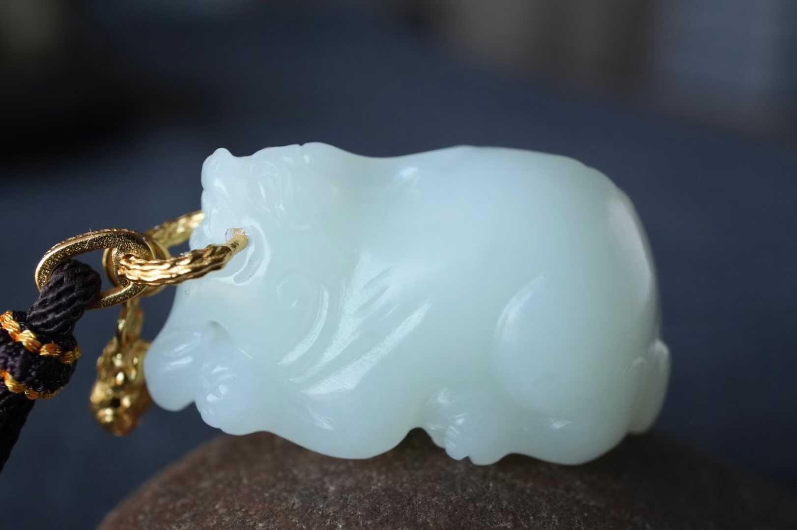 天然和田玉,老坑俄料渾厚凝實,顏色略偏青白,玉質細膩油潤性佳,手感綿糯,貔貅圓潤飽滿首伏臥在地,吸納財氣,細節特別生動,過燈純淨,無棉無水線,無雜裂完美品相。