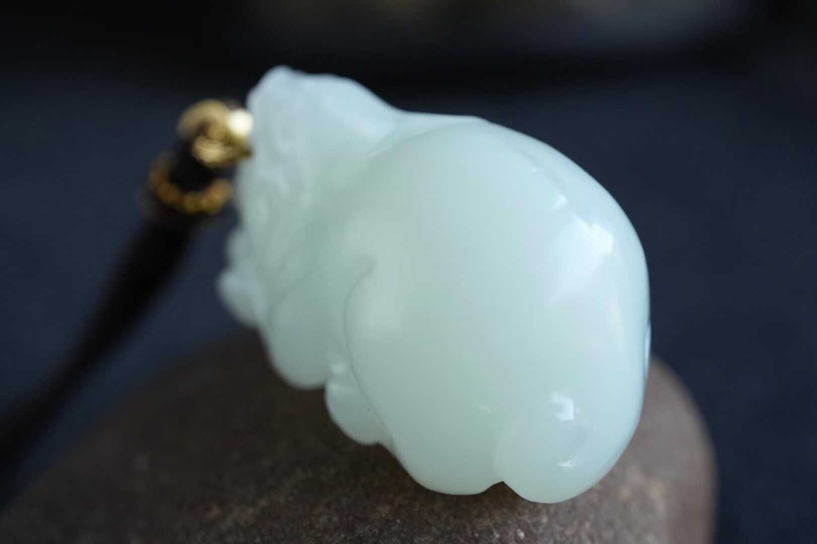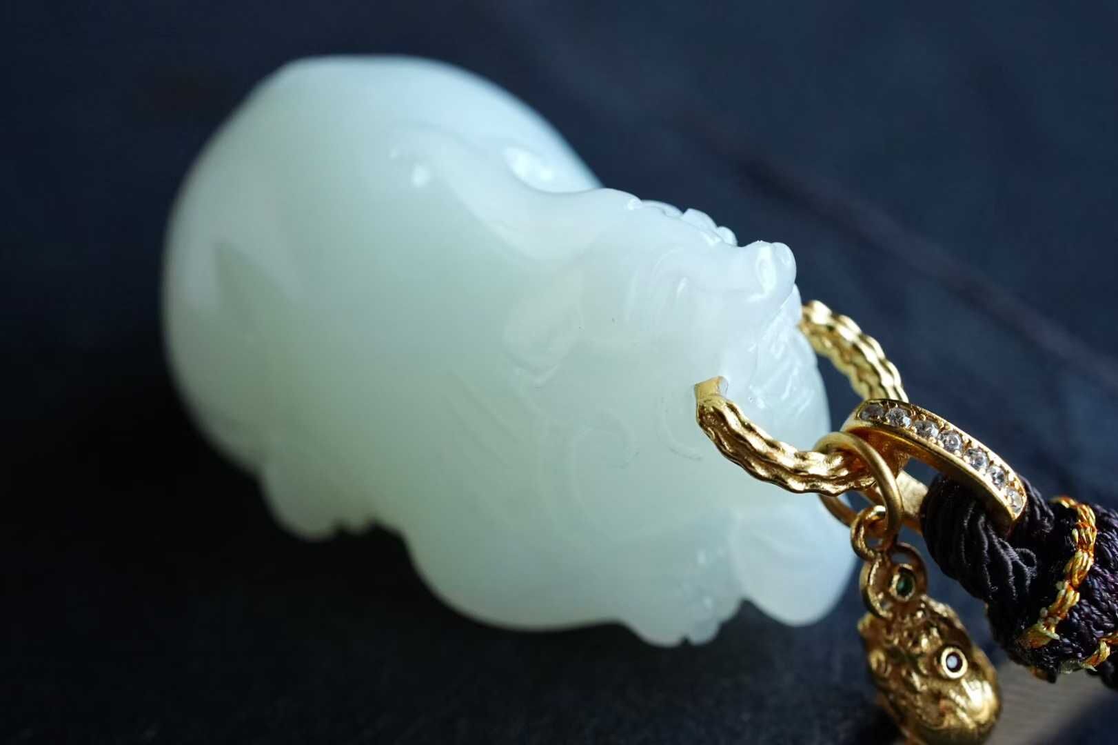 • 和田玉俄料白玉立體精雕貔貅掛件,天然和田玉軟玉