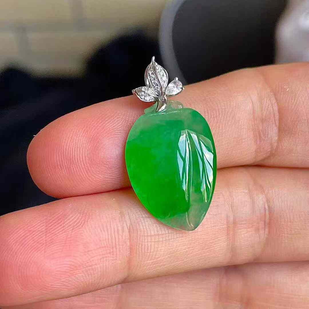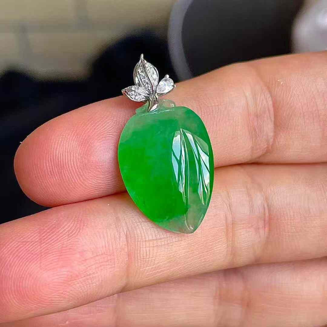 天然翡翠A玉,無紋裂,色澤艷麗。