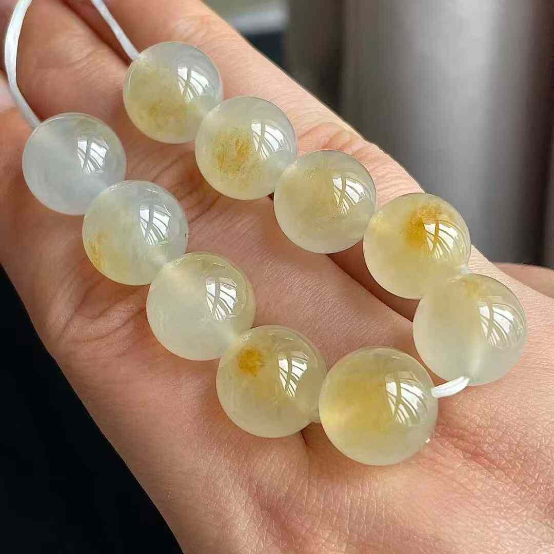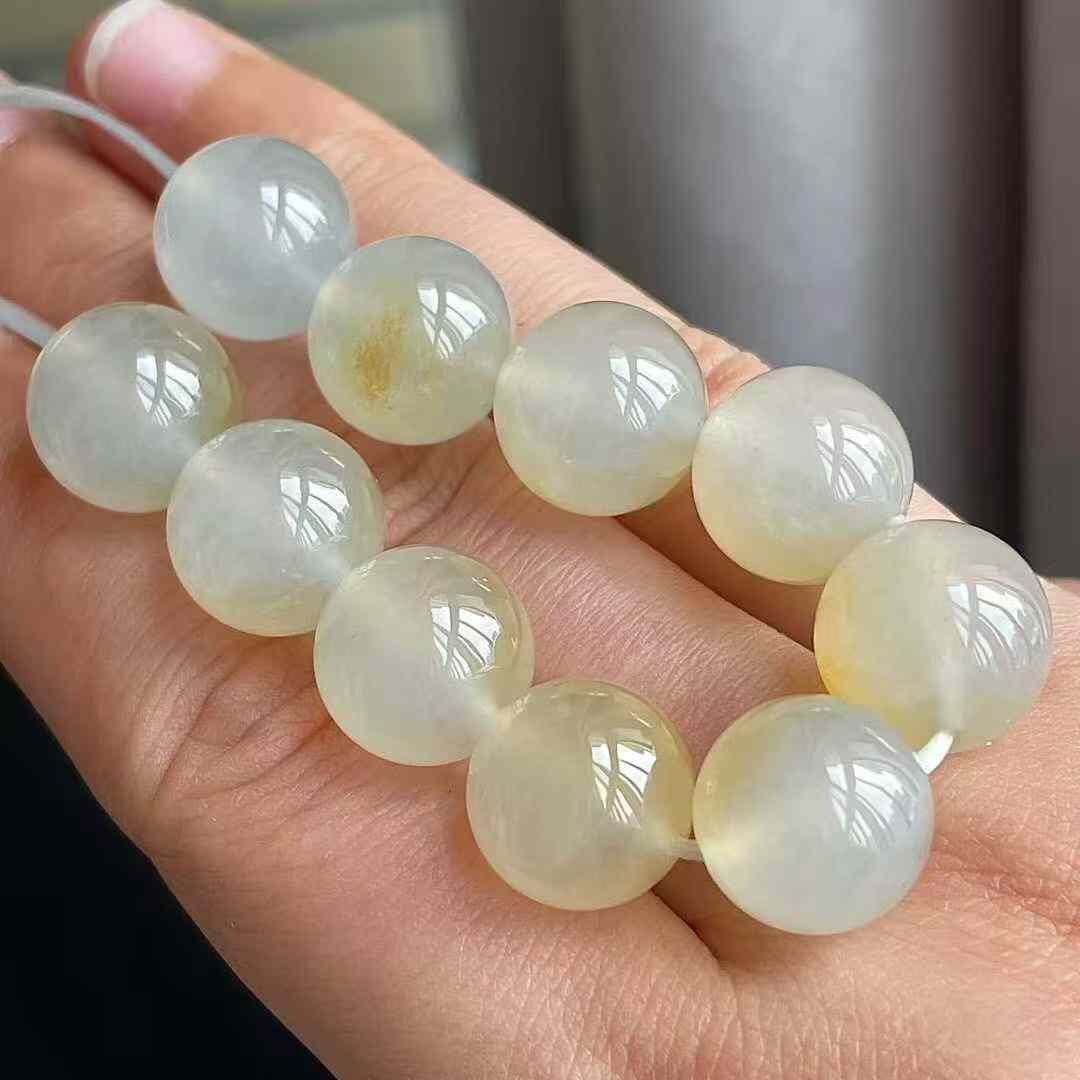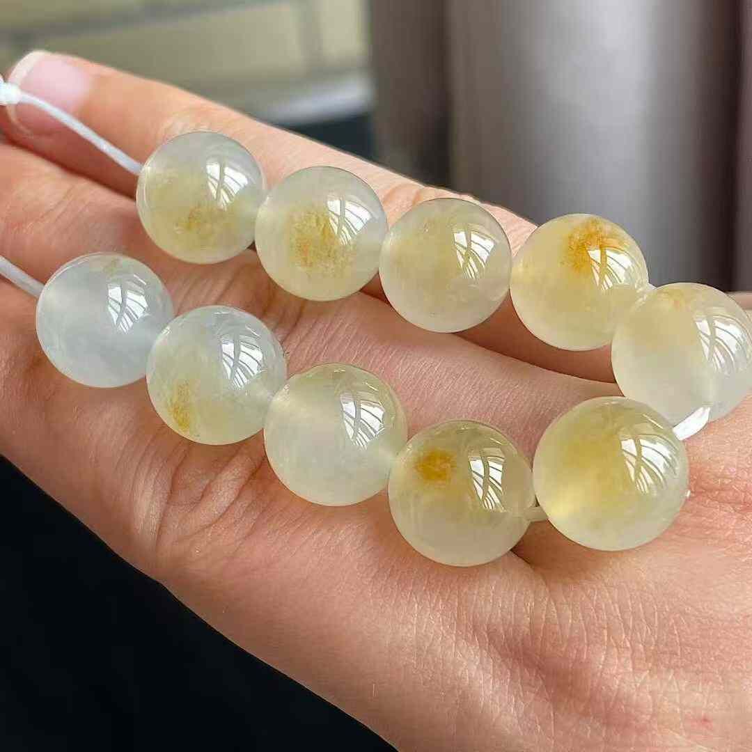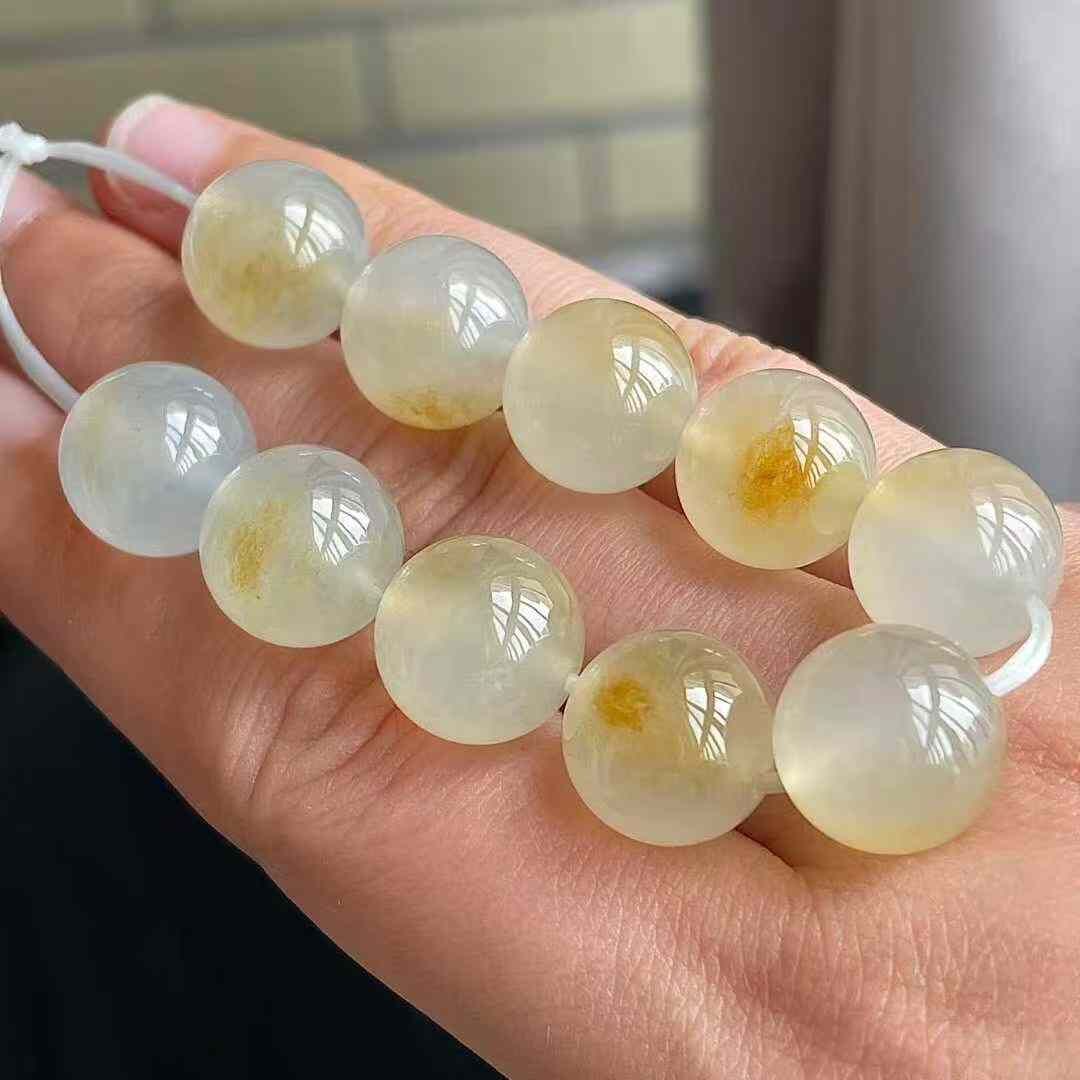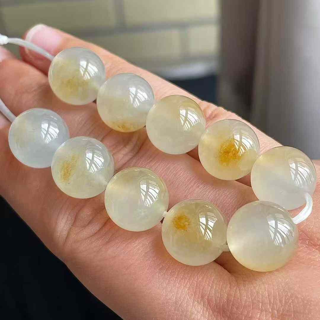 天然翡翠A玉,冰黃圓珠裸石,無紋裂,水頭足。