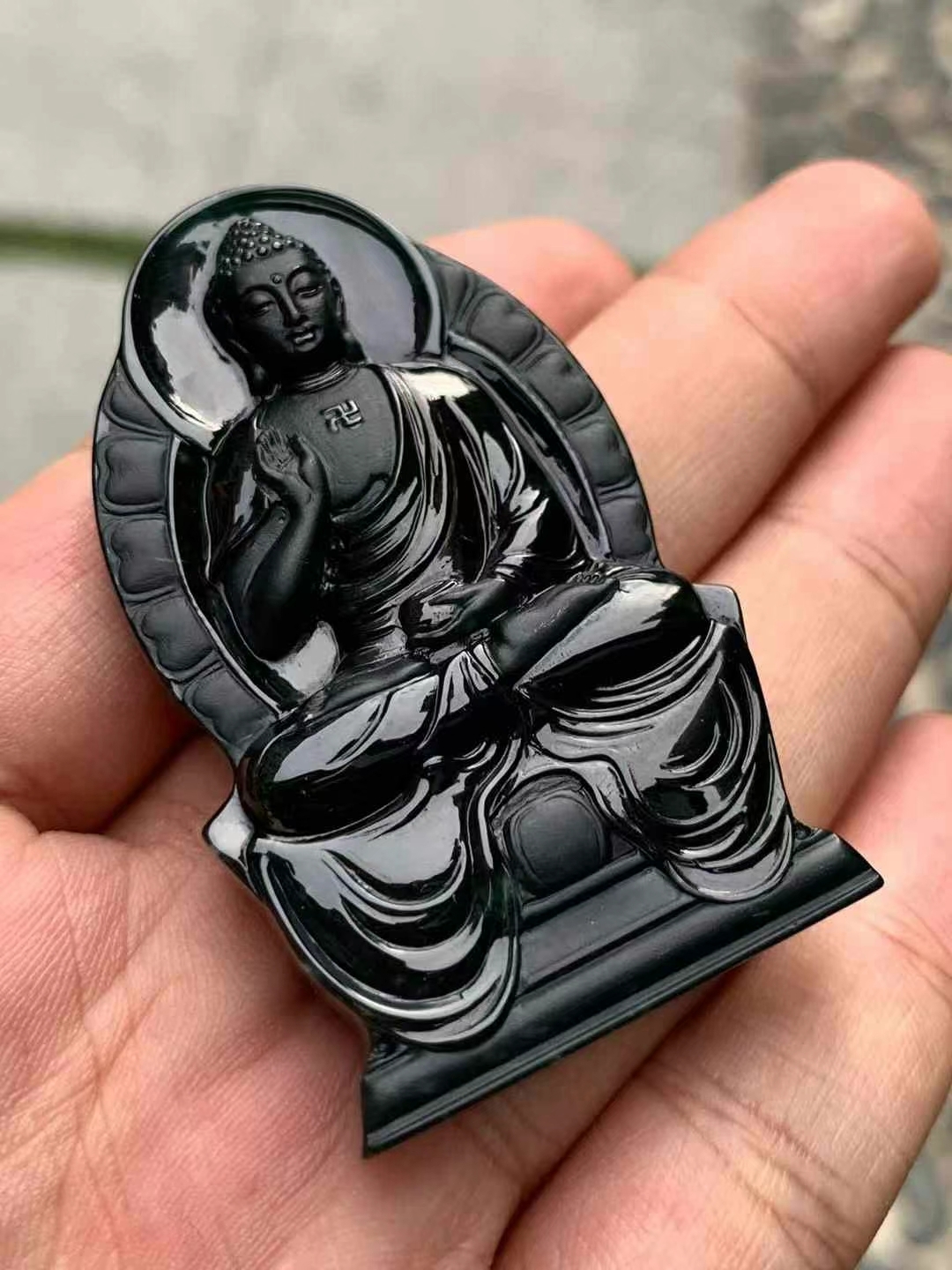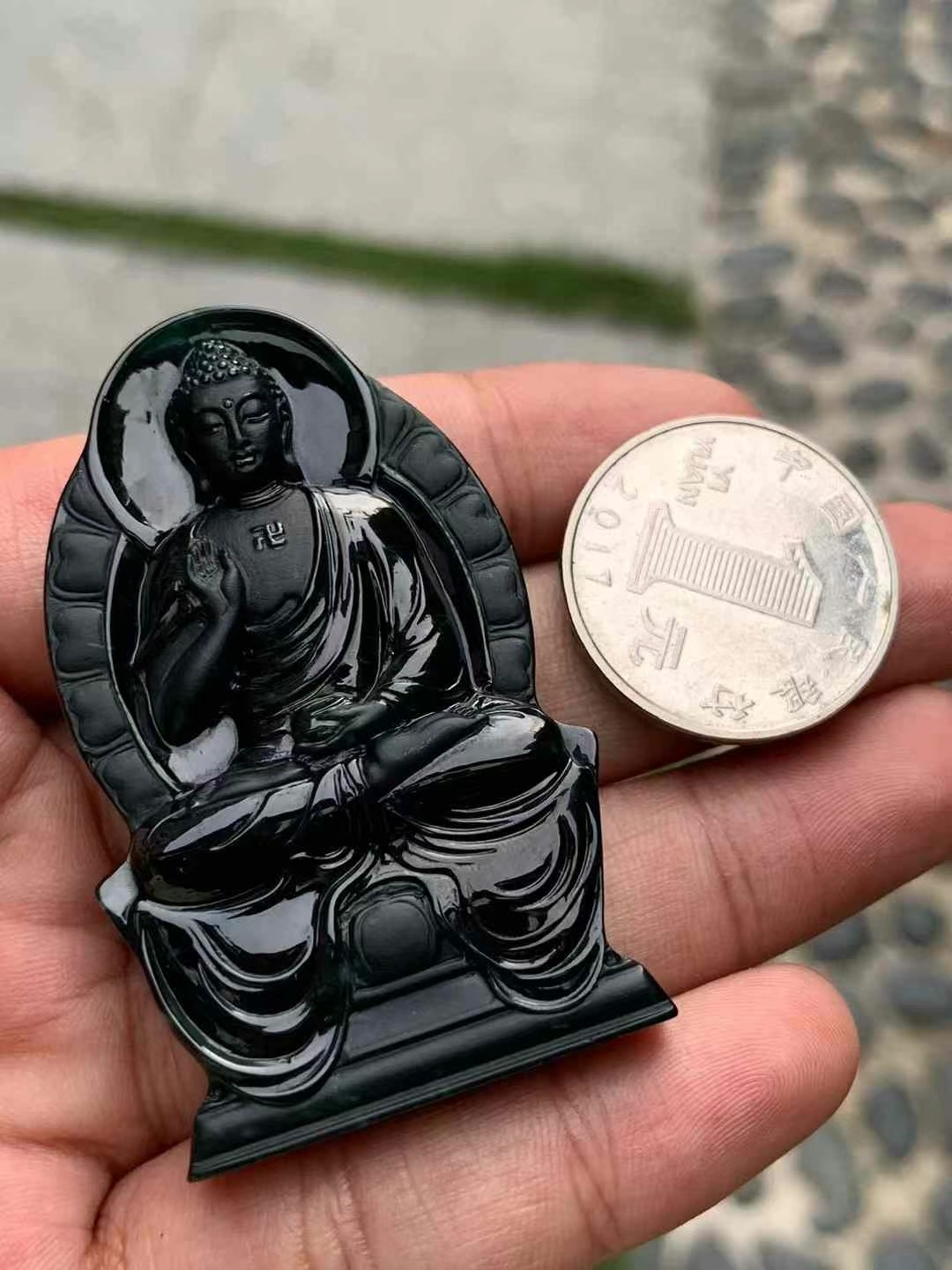 • 翡翠墨翠阿彌陀佛,天然翡翠A玉, 緬甸玉, Jade, Jadeite