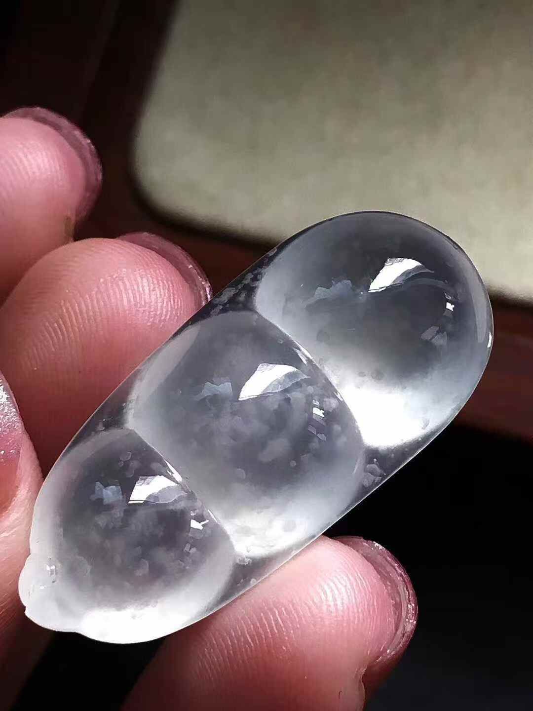 天然翡翠A玉,冰潤水透,種老細膩起熒。