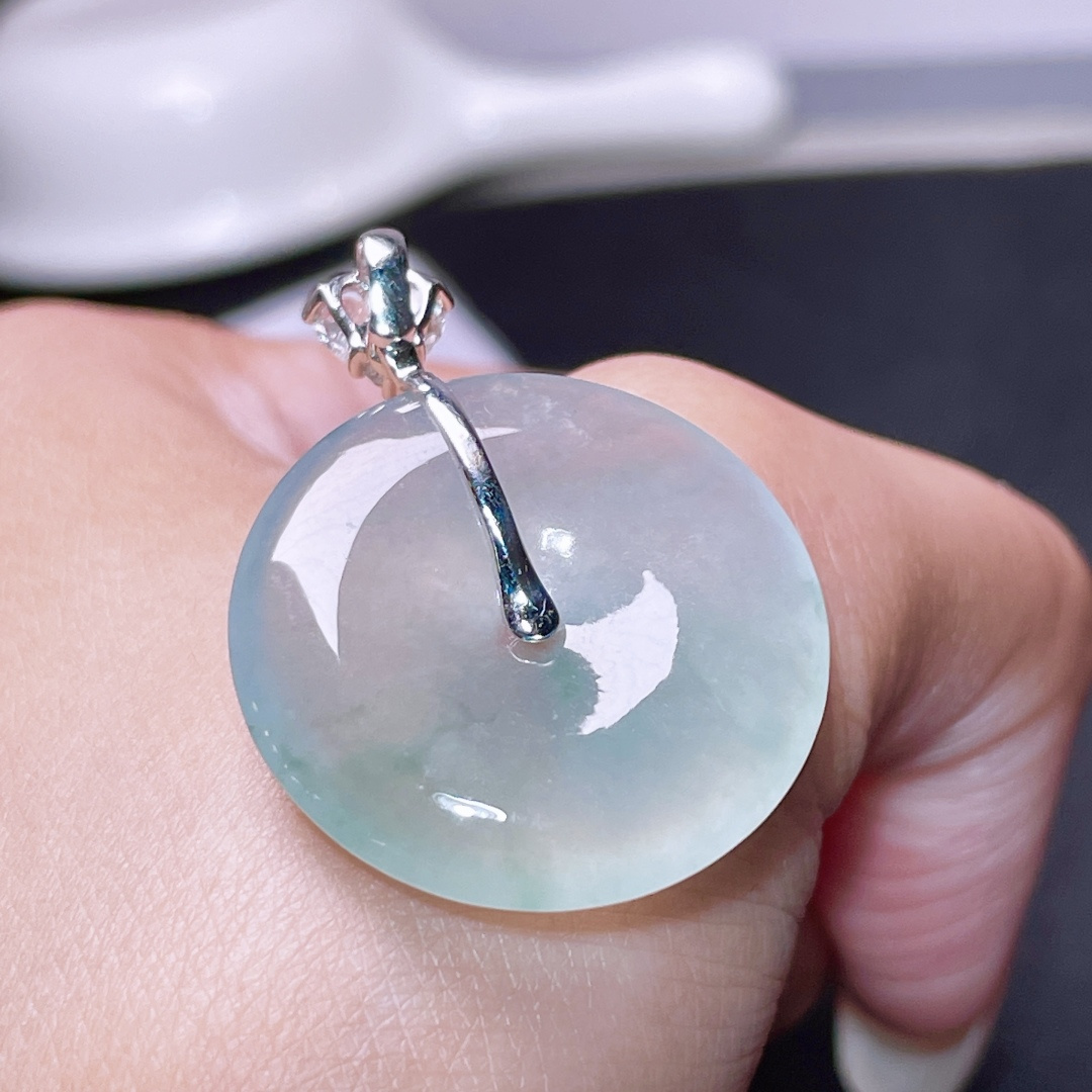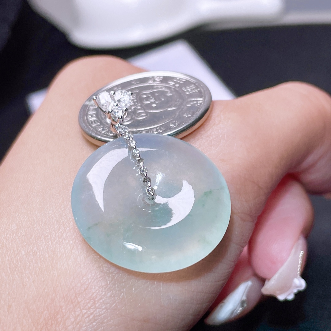 • 翡翠平安扣吊墜 (24.7mm直徑),天然翡翠A玉, 緬甸玉, Jade, Jadeite