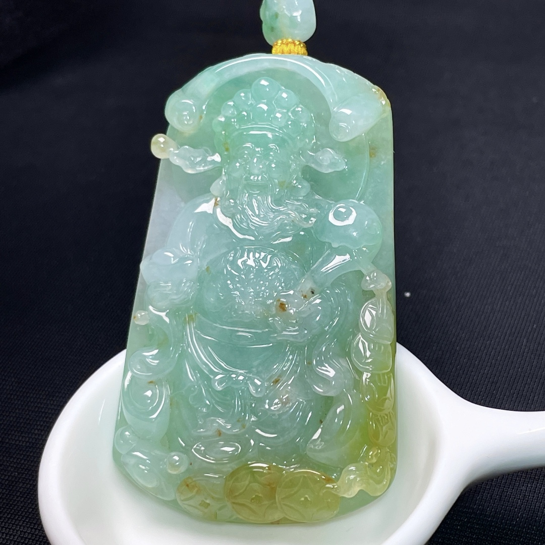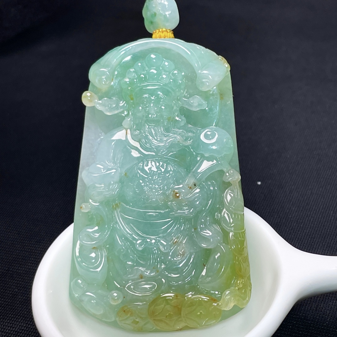 • 翡翠財神吊墜,天然翡翠A玉, 緬甸玉, Jade, Jadeite