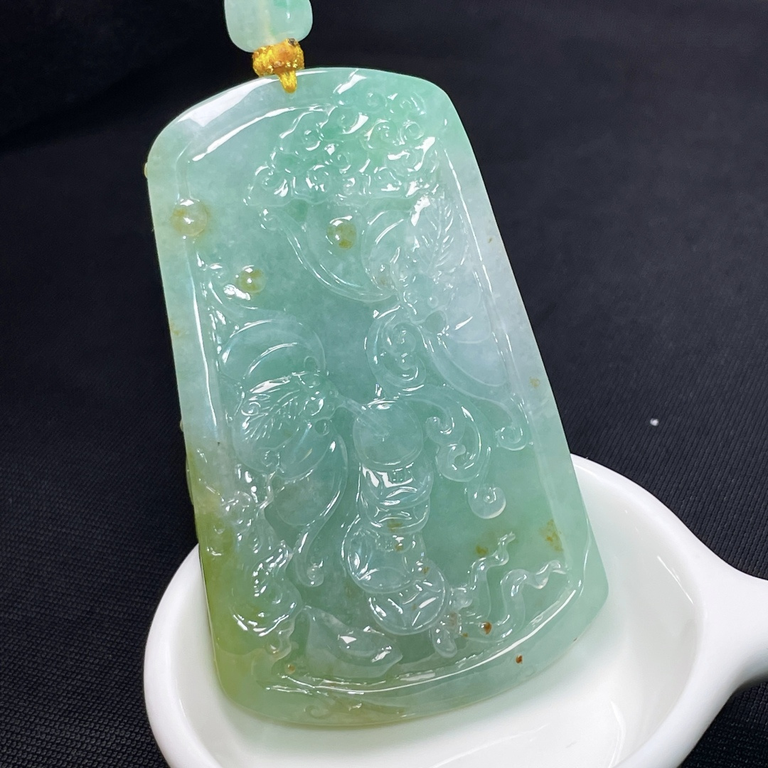 天然翡翠A玉,緬料,老坑冰種,黃加綠。