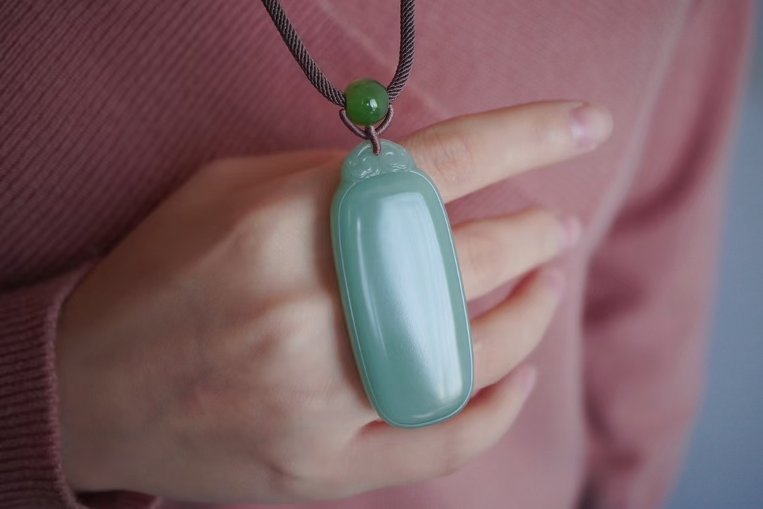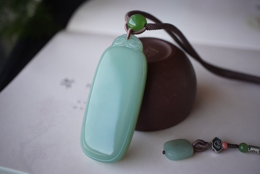 收藏級,碧玉稀有瓷藍底粉青,顏色清雅不發暗,高密度一級細料,玉質細膩油潤脂粉足,過燈近乎無結構,無雜無裂完美品相,無棉無水線高品質!值得收藏方牌造型厚實飽滿,牌頭復古玉衍設計,主牌面素面無雕寓意平平安安,雙面均可佩戴。