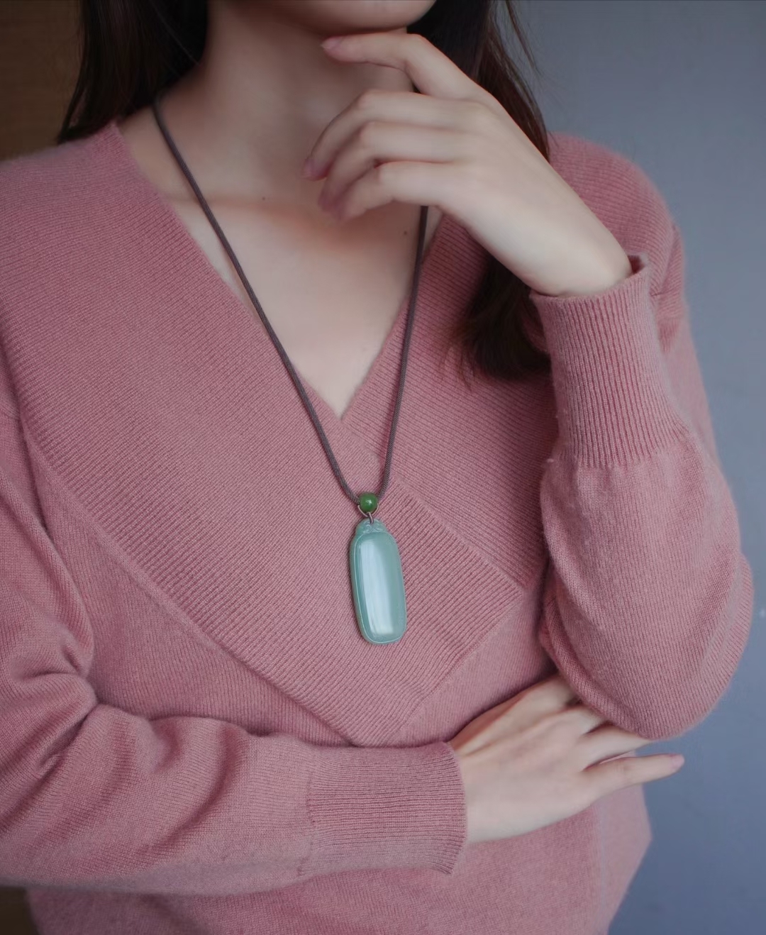 搭配純手工製作進口繩,繞線精緻牢固,和田玉銀杏葉方牌作尾墜,純銀小如意做背雲,碧玉圓珠,純銀小配件,碧玉圓珠點綴,佩戴雅緻大方。