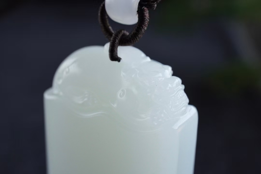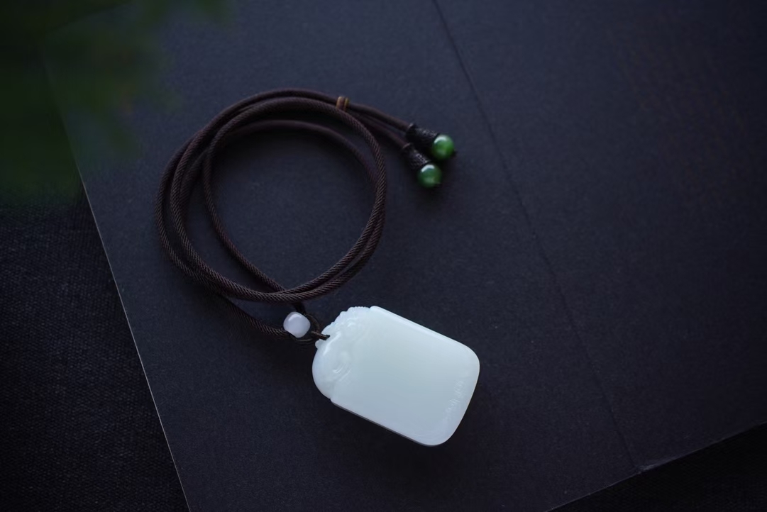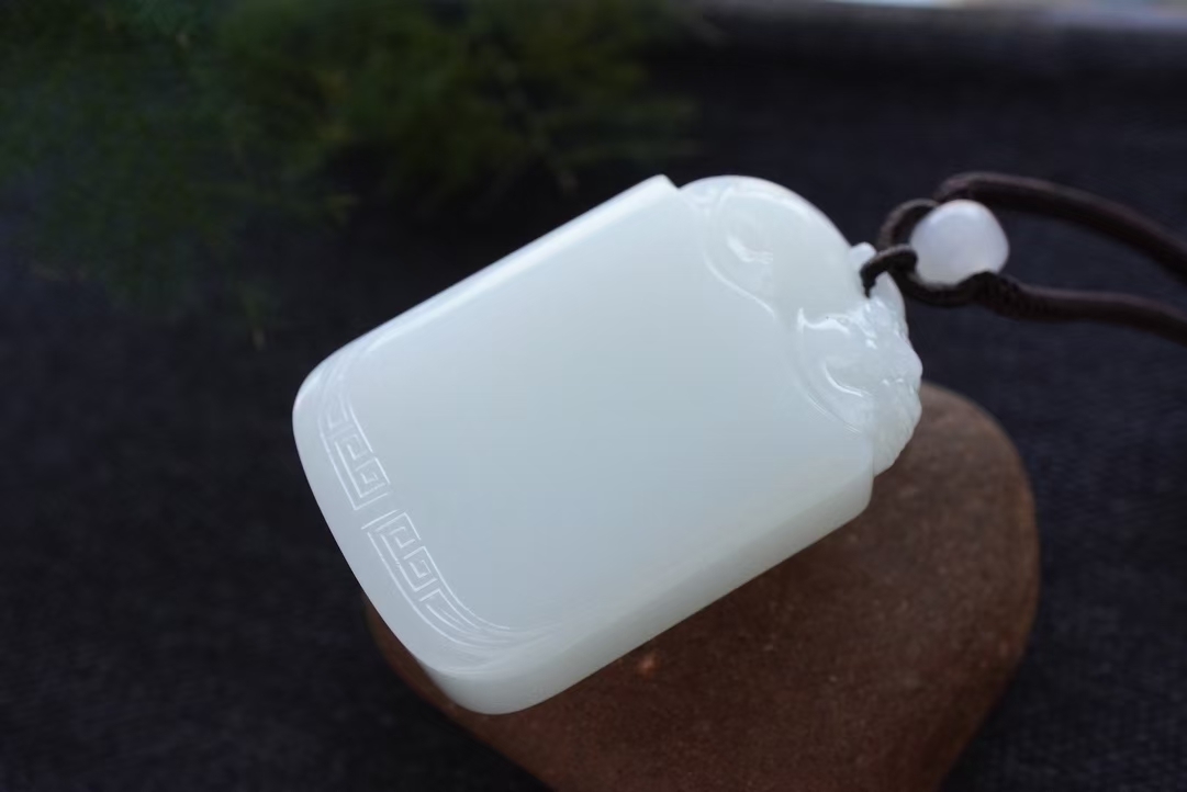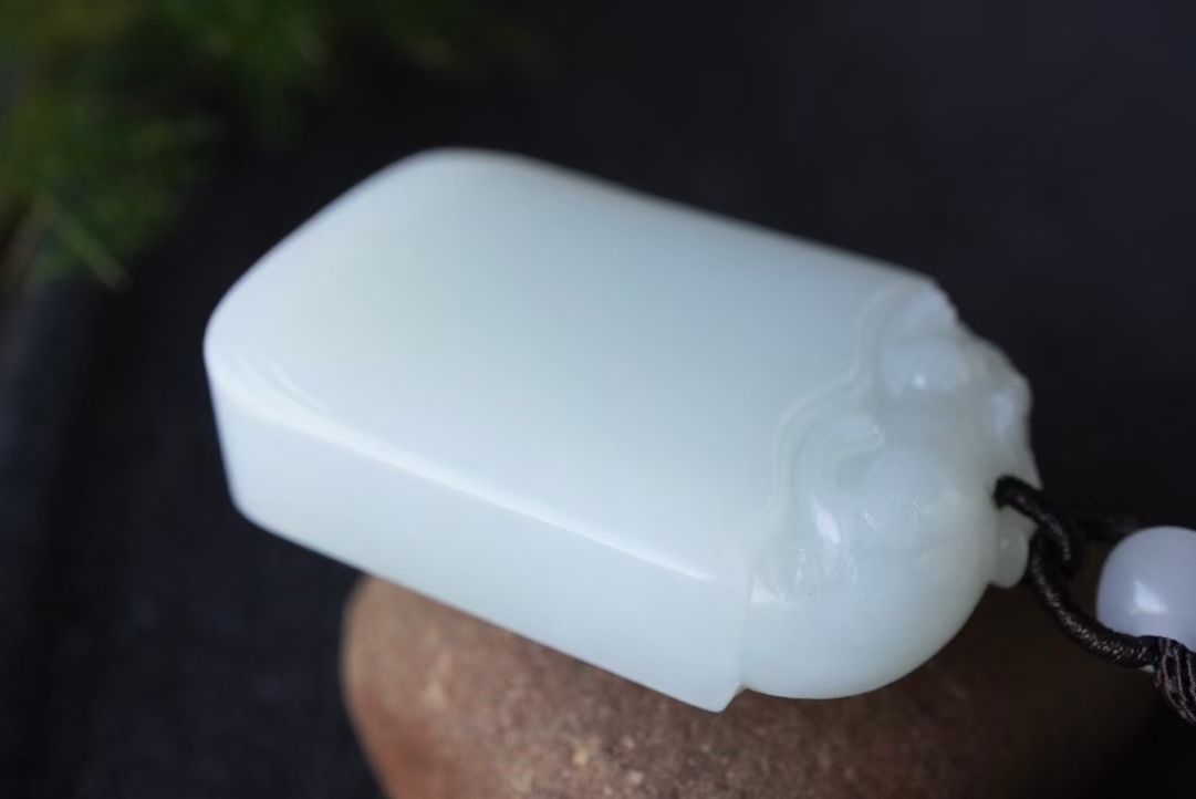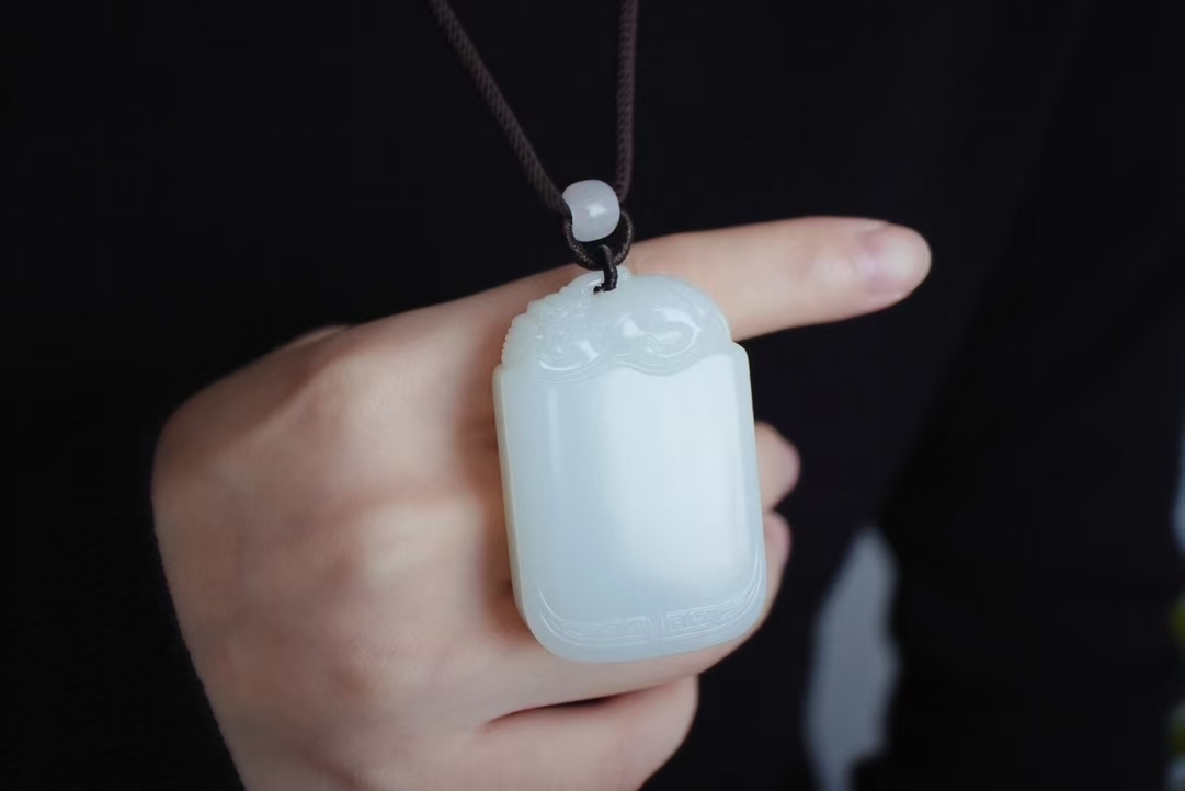 • 和田玉羊脂玉“貔貅”平安無事牌掛件,天然和田玉軟玉
