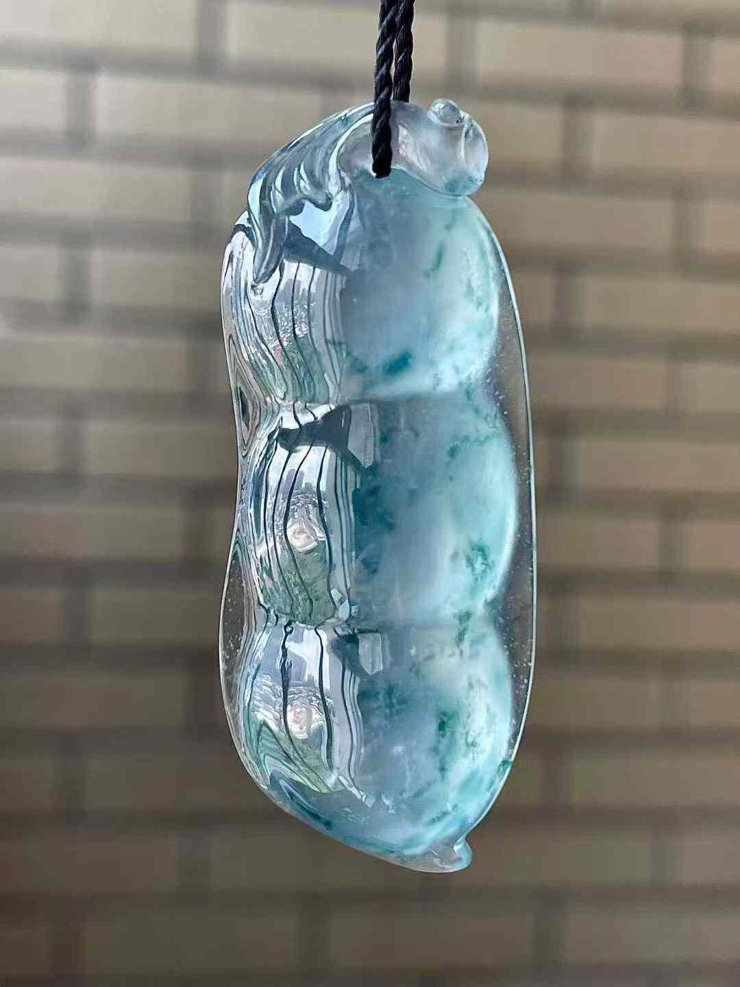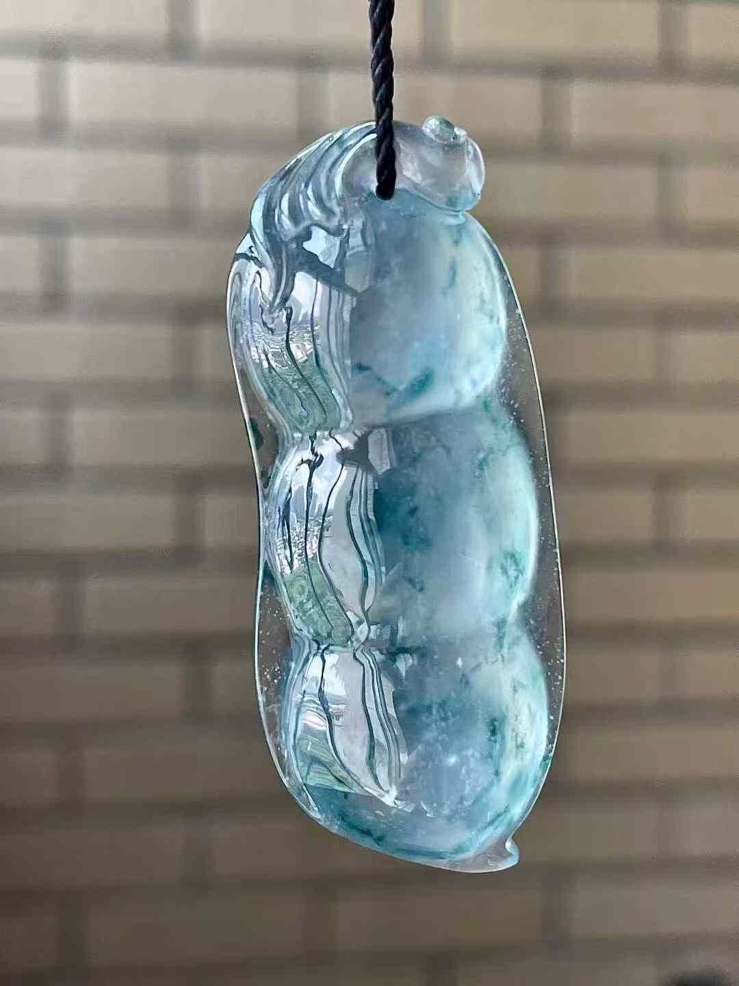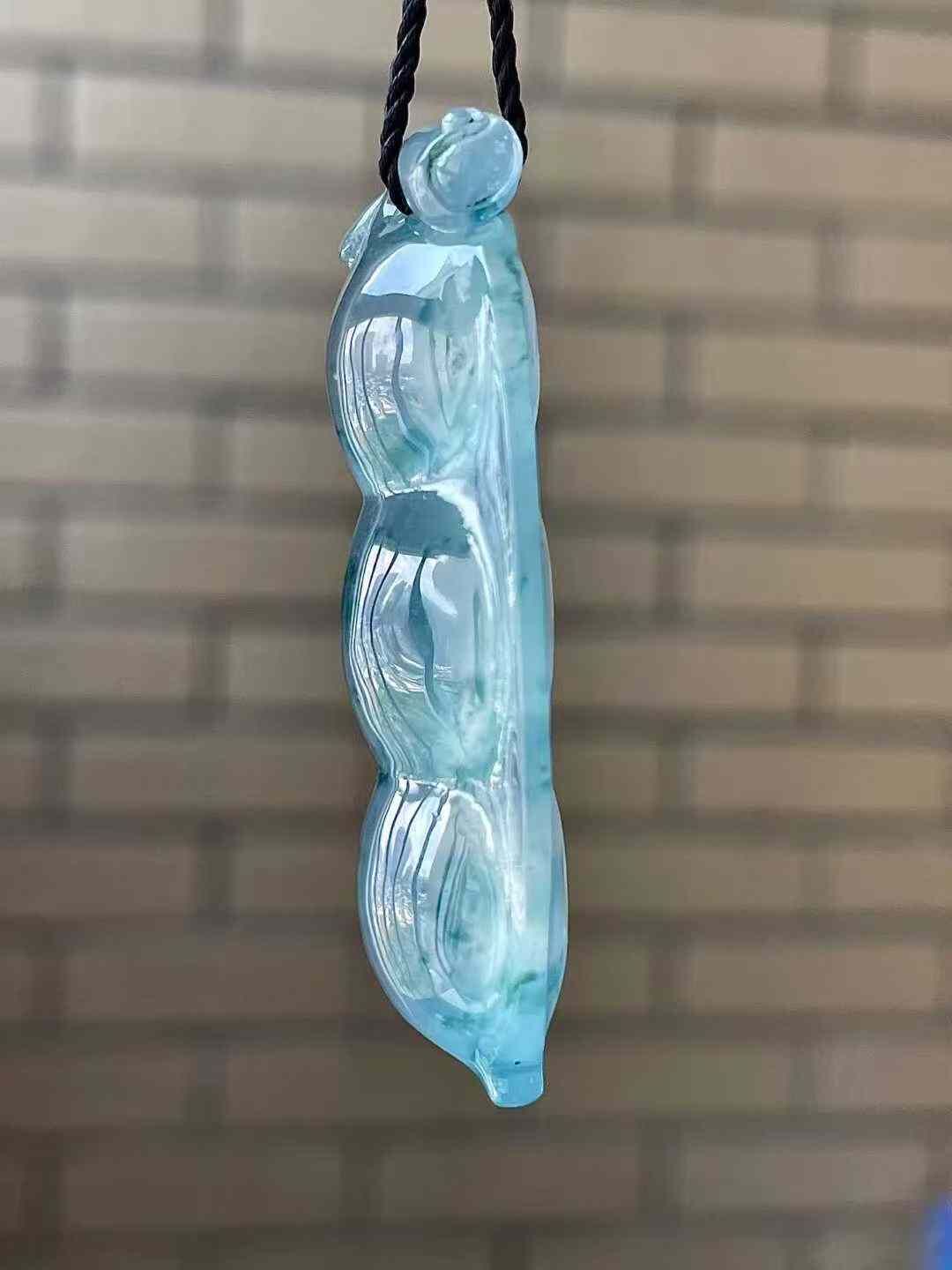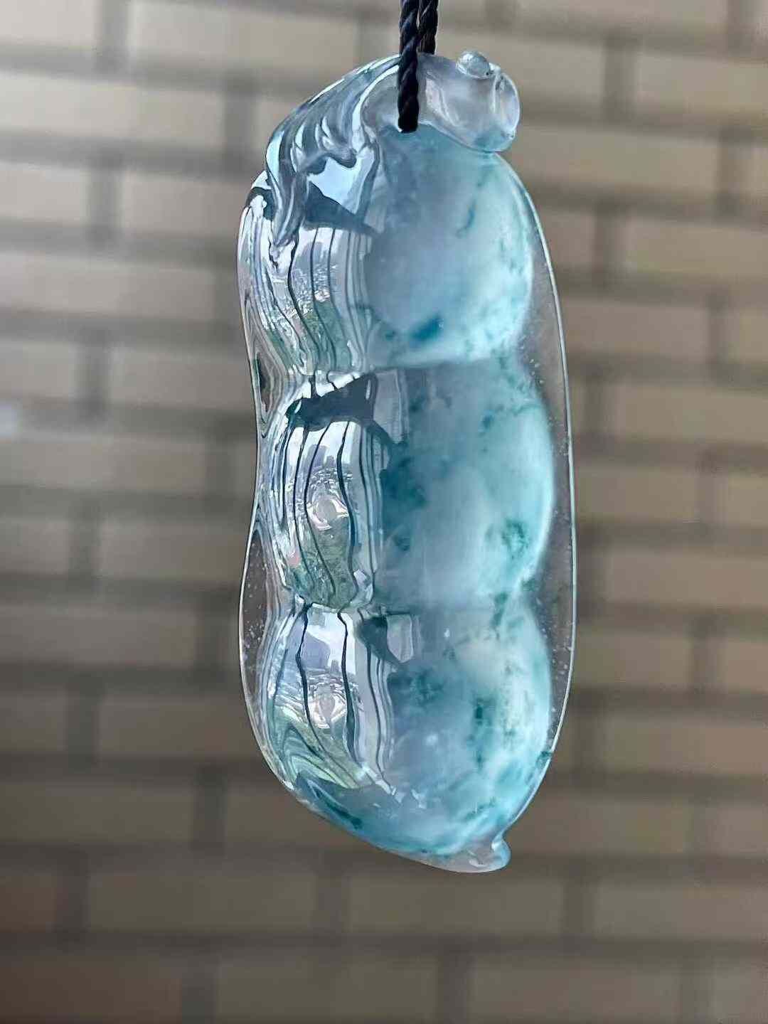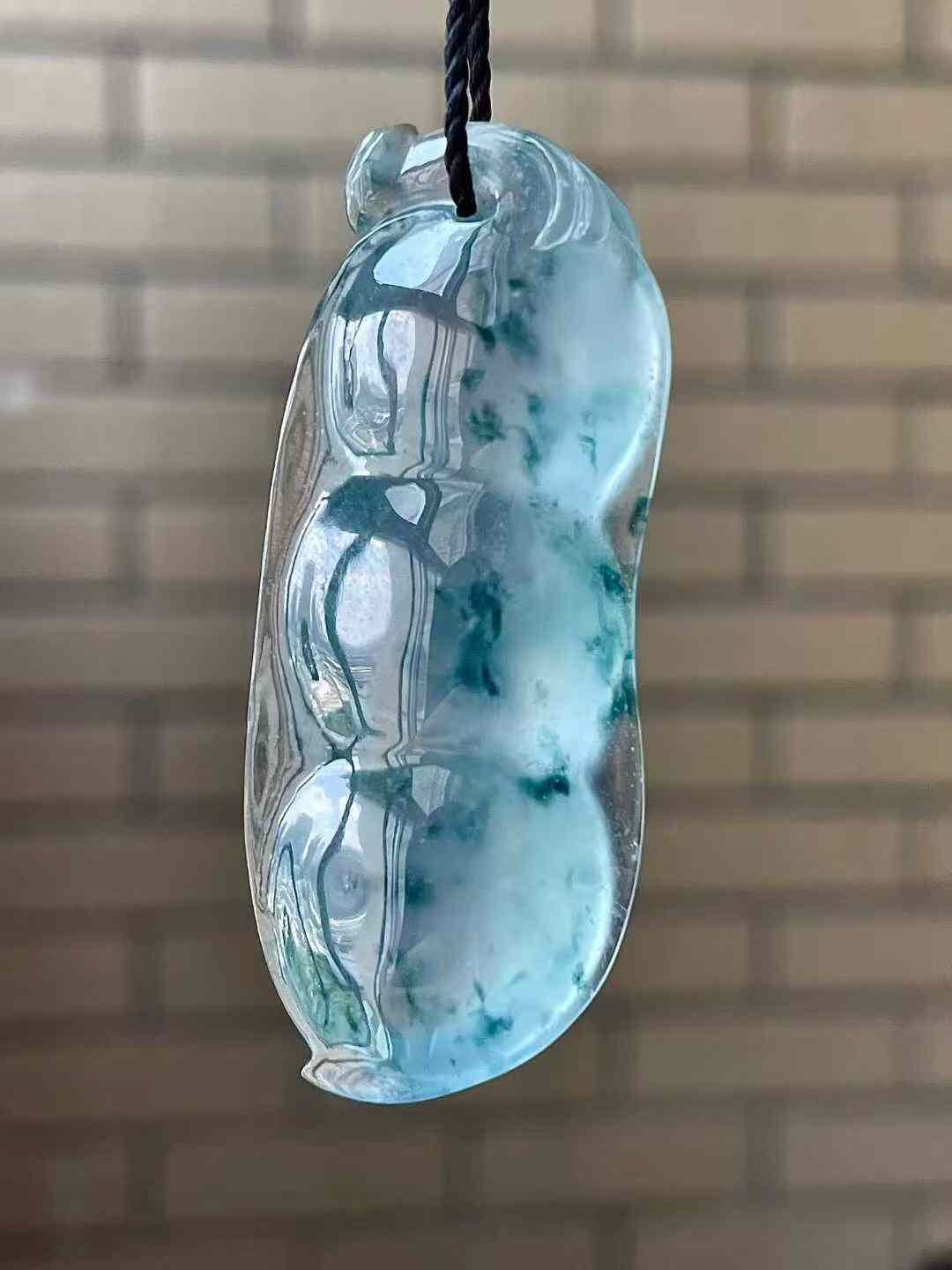 • 翡翠玻璃種飄藍花福豆吊墜,天然翡翠A玉, 緬甸玉, Jade, Jadeite