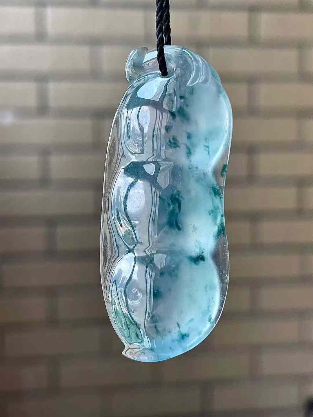 11225541 翡翠玻璃種飄藍花福豆吊墜