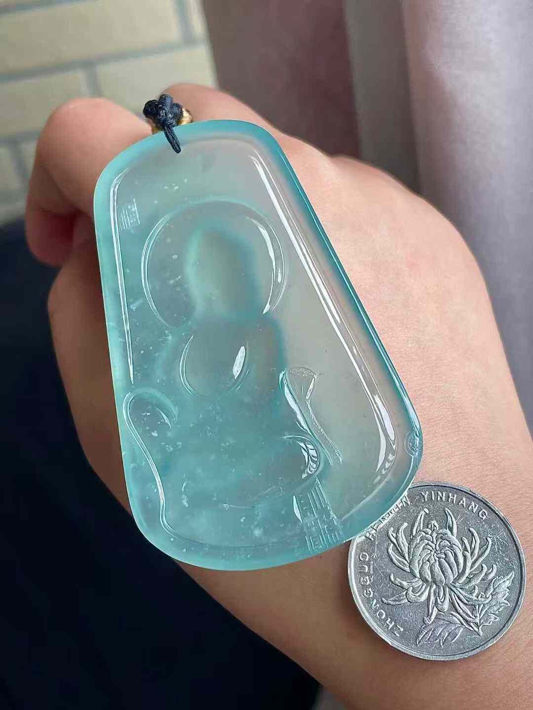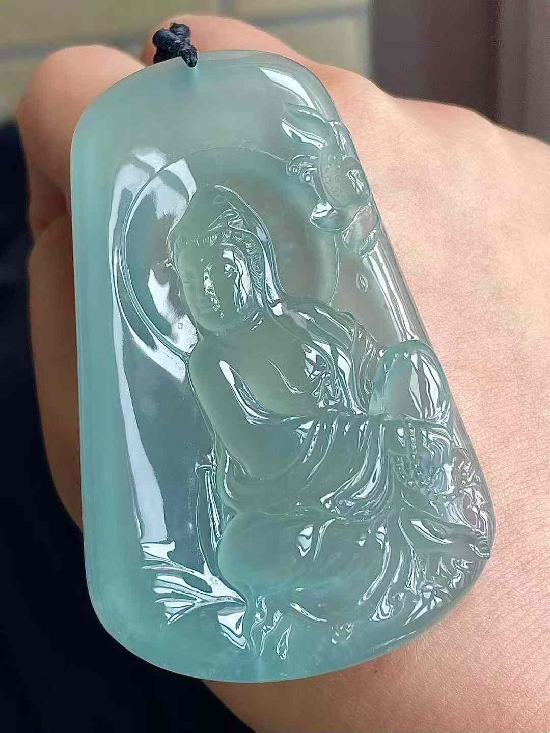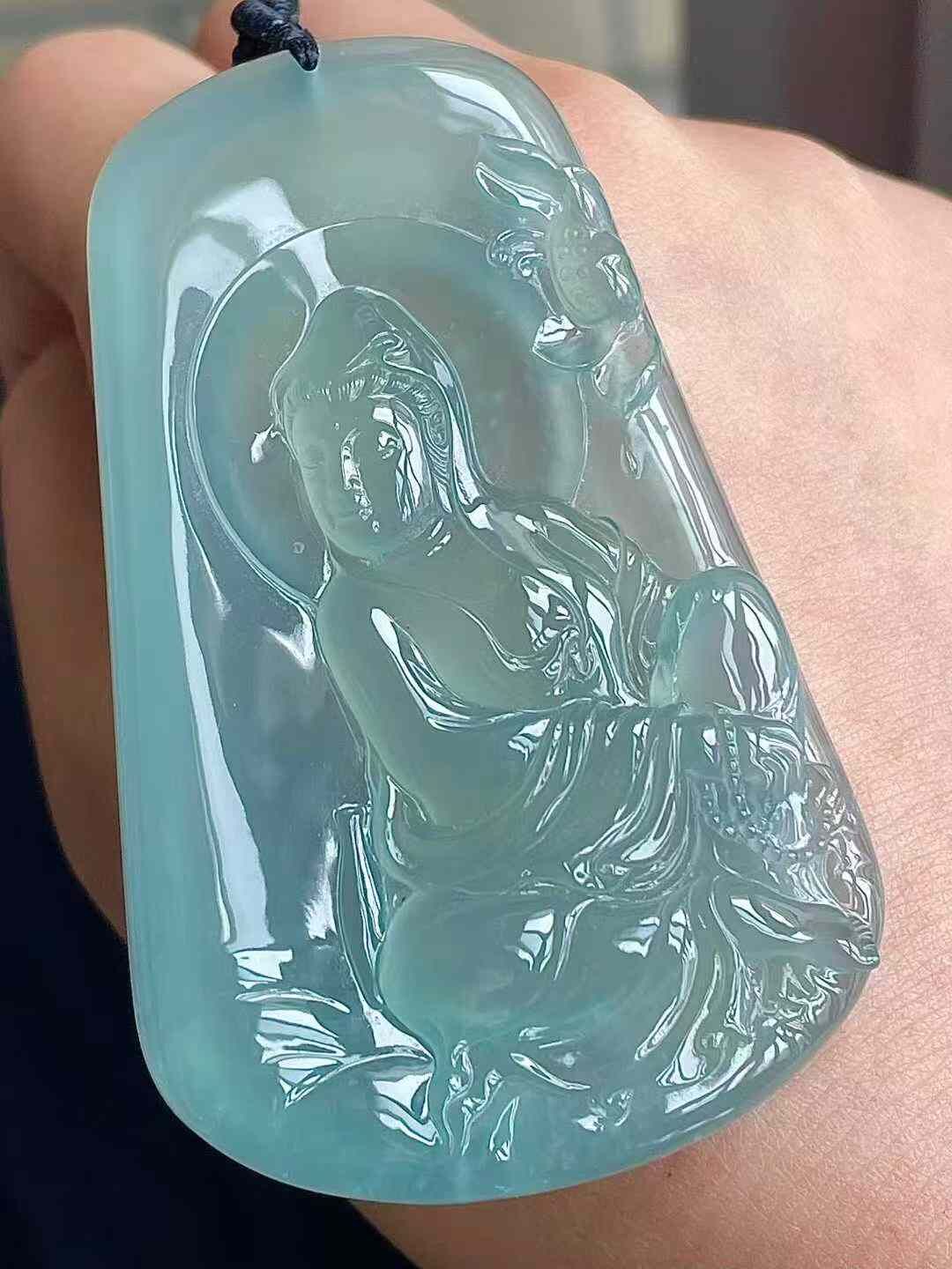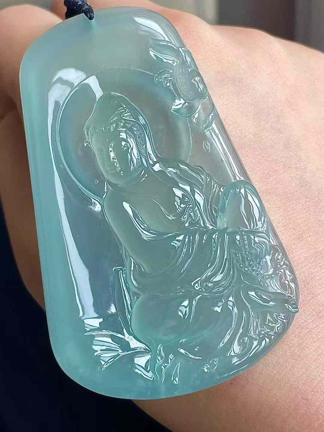 11225544 翡翠高冰天空藍自在觀音吊墜