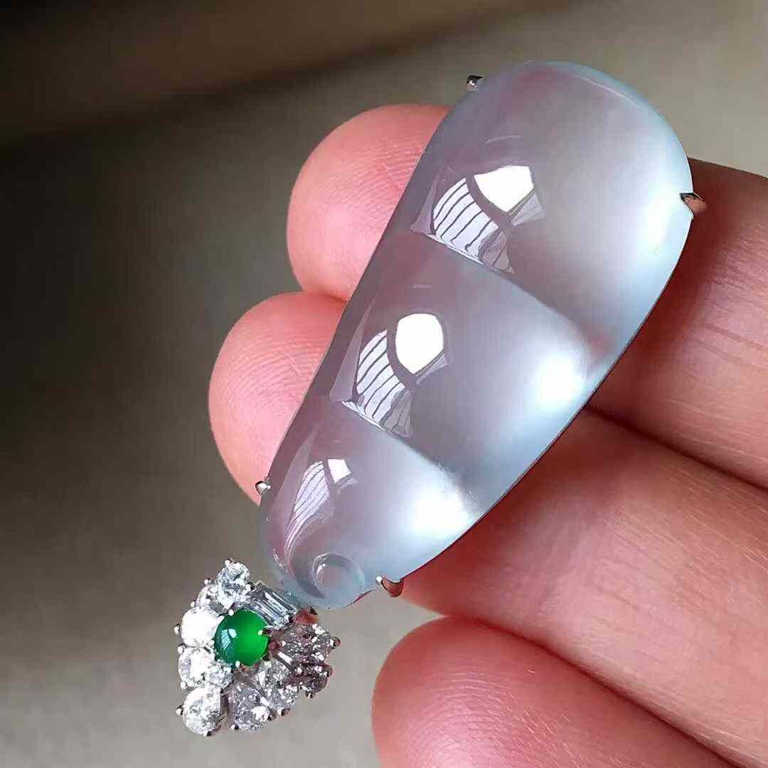 天然翡翠A玉,18K金鑲嵌,飽滿水潤,無裂。
