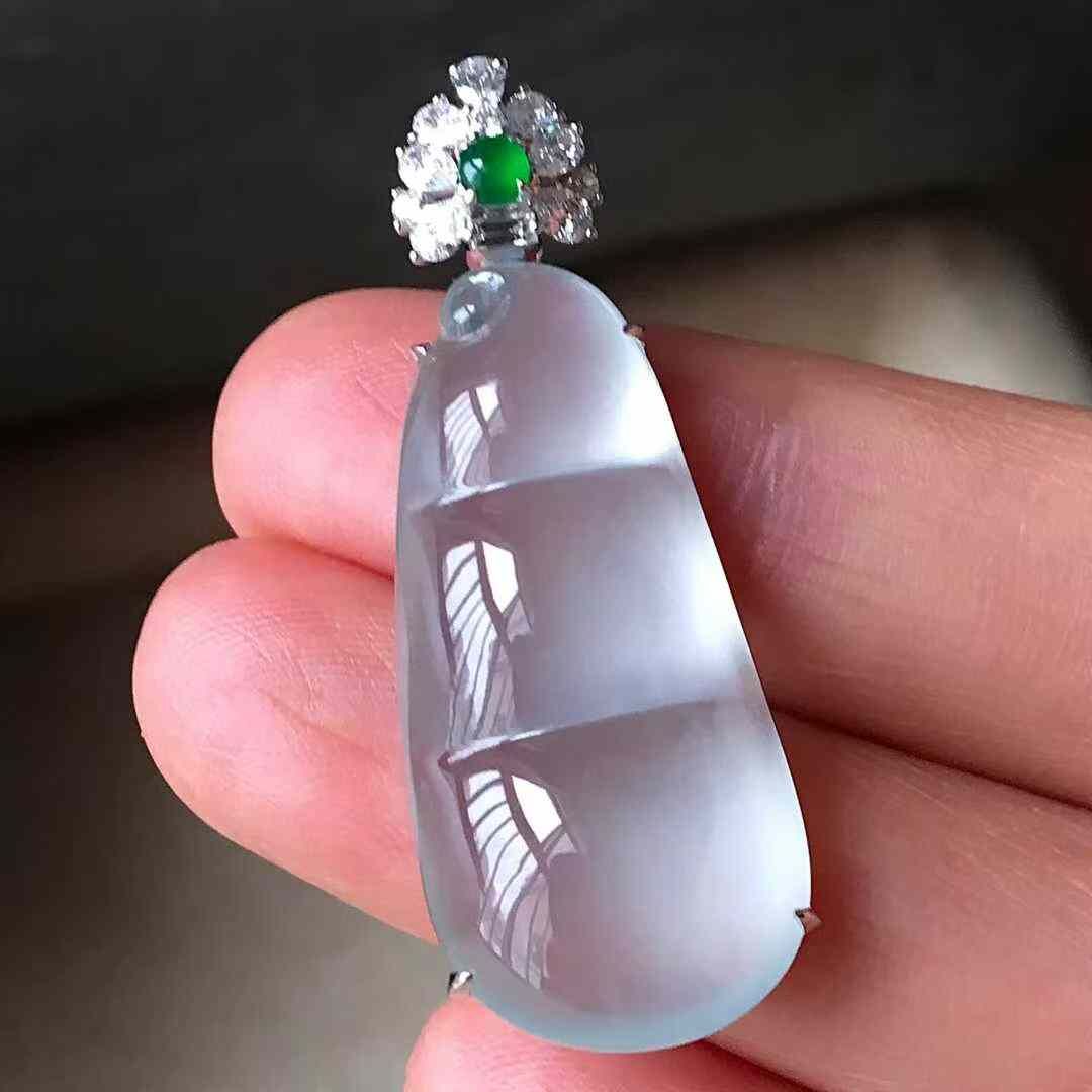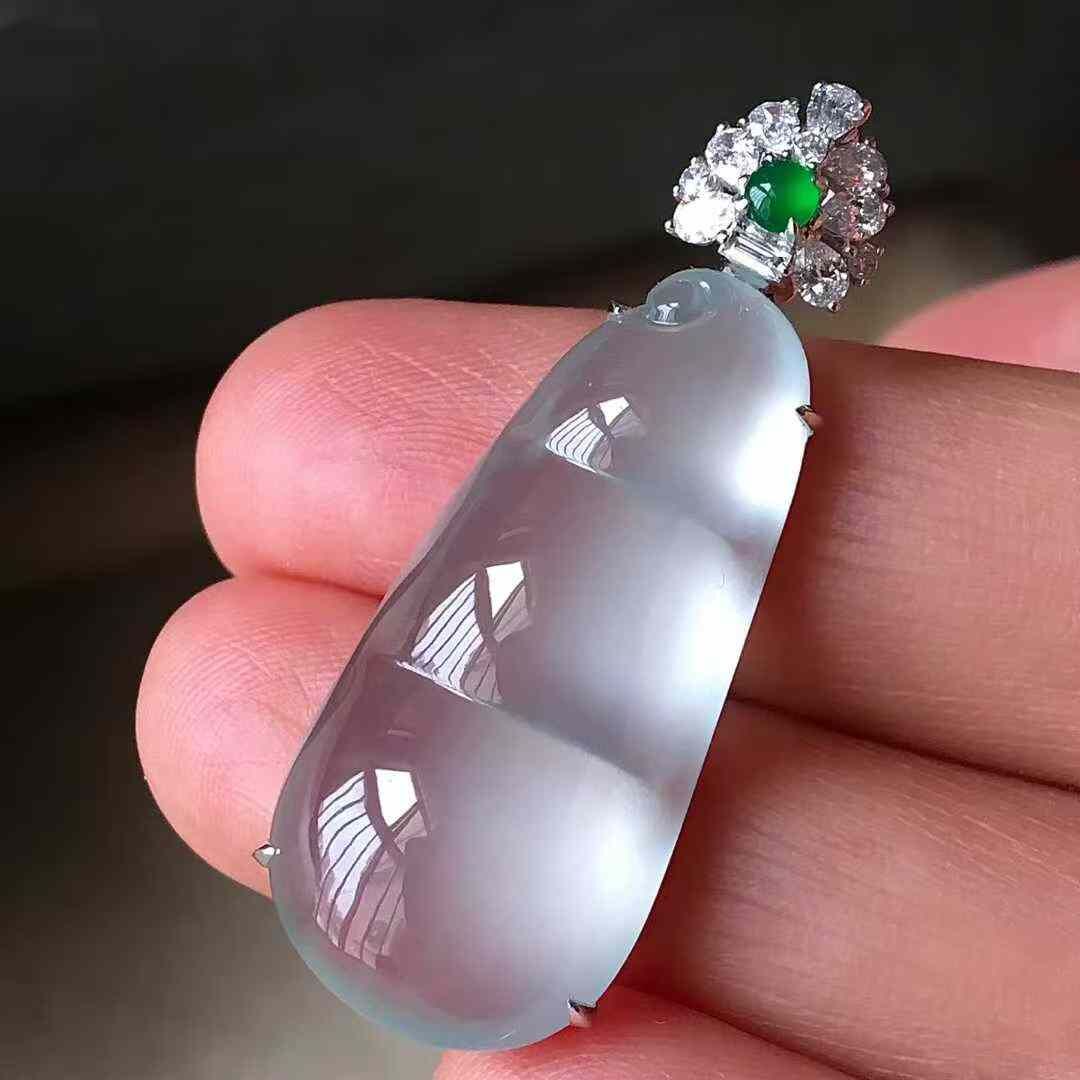 • 翡翠玻璃種福豆吊墜,天然翡翠A玉, 緬甸玉, Jade, Jadeite