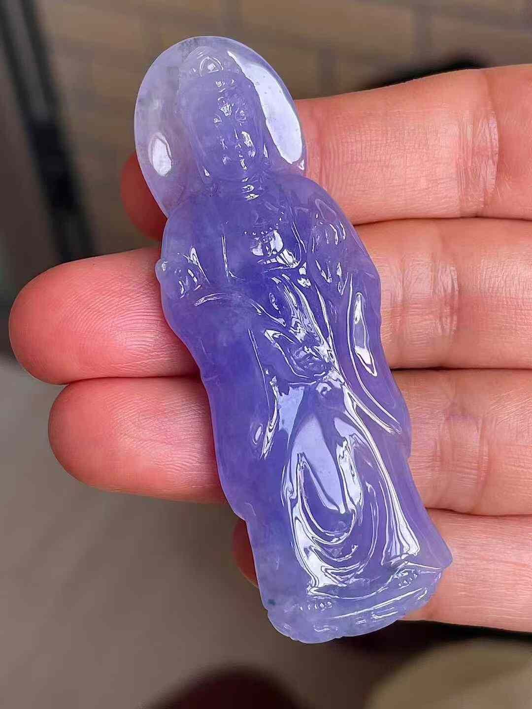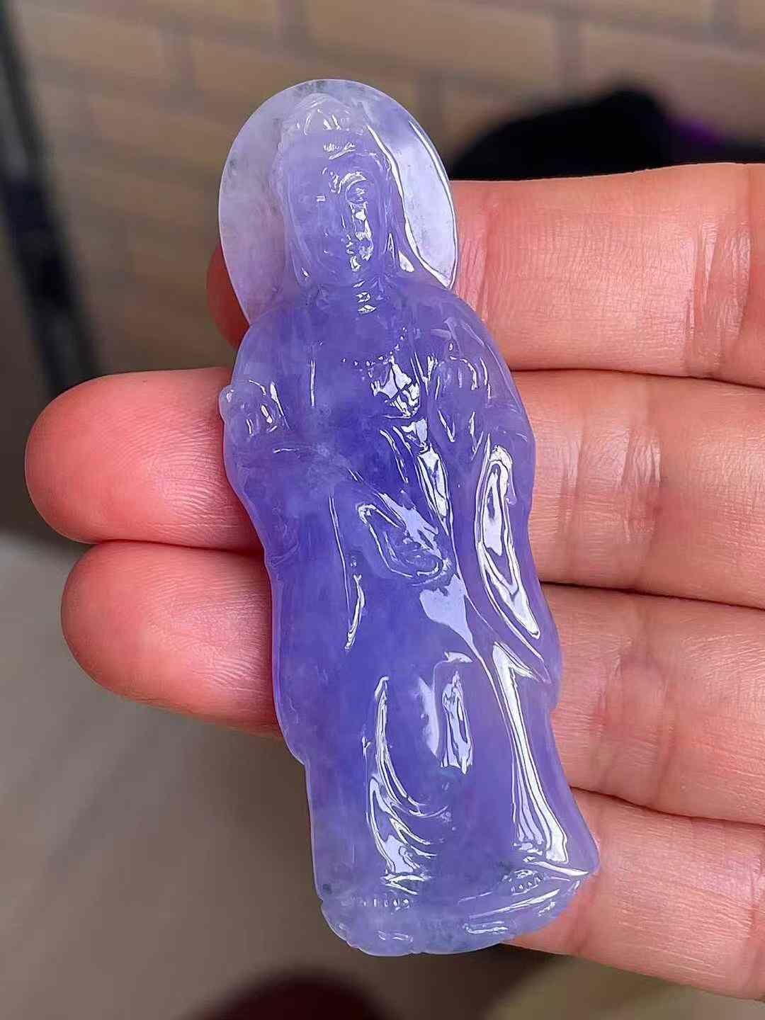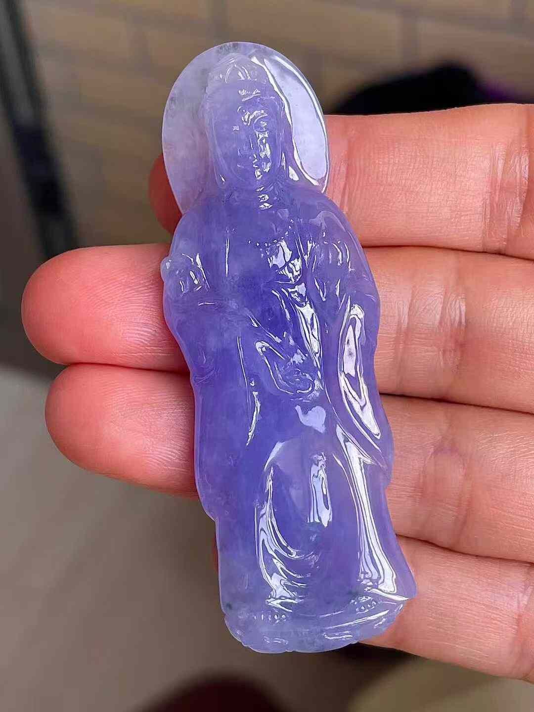 • 翡翠冰種紫羅蘭站觀音吊墜,天然翡翠A玉, 緬甸玉, Jade, Jadeite