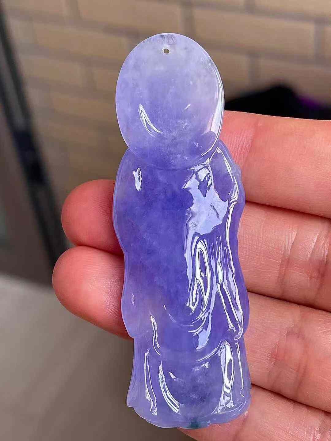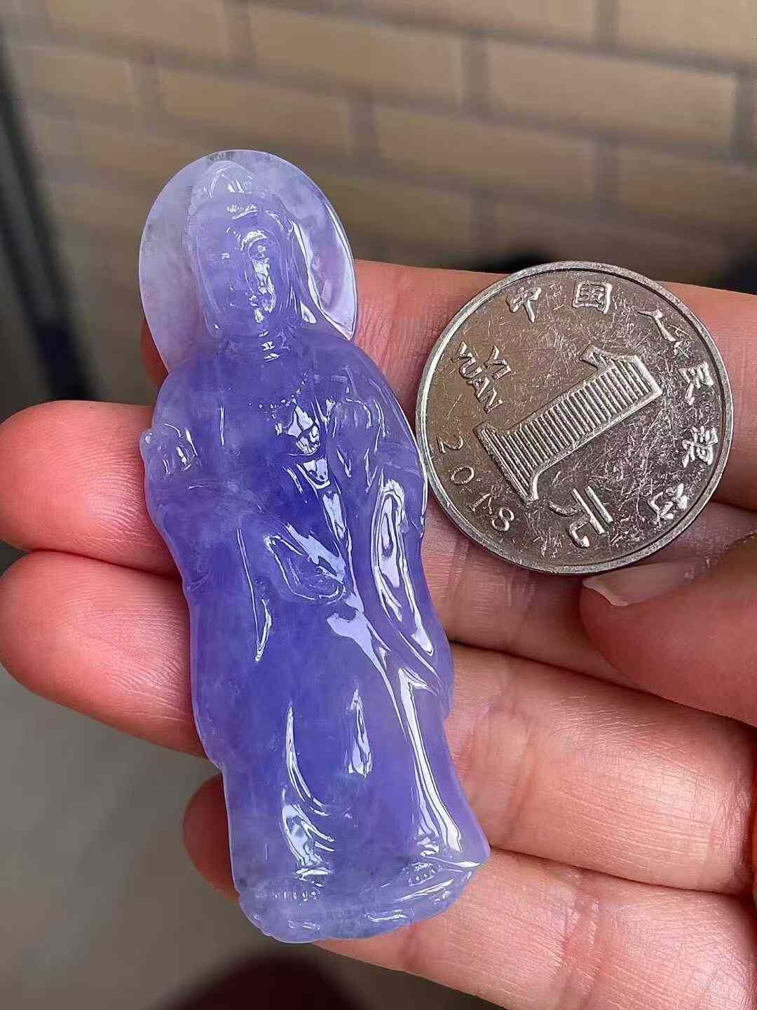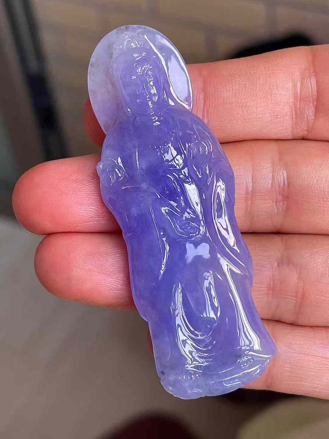 • 翡翠冰種紫羅蘭站觀音吊墜,天然翡翠A玉, 緬甸玉, Jade, Jadeite