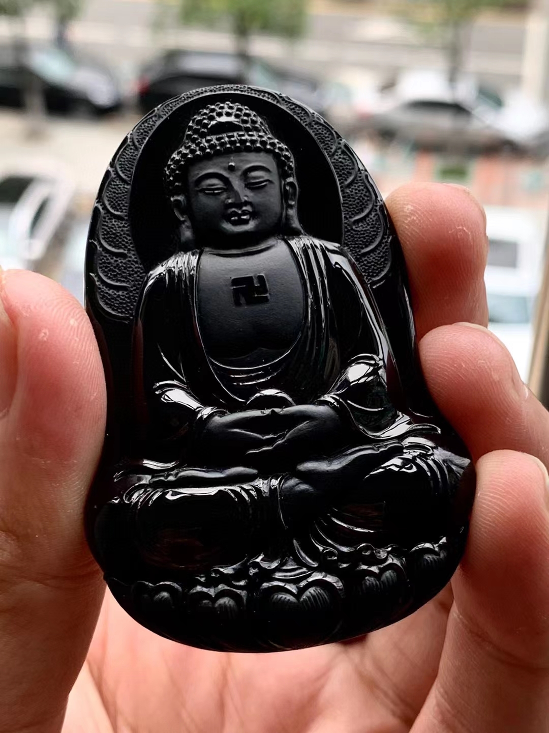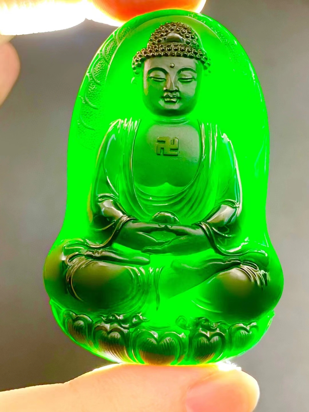 • 墨翠阿彌陀佛,天然翡翠A玉, 緬甸玉, Jade, Jadeite