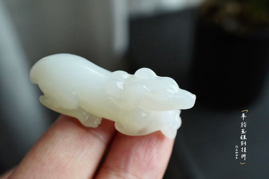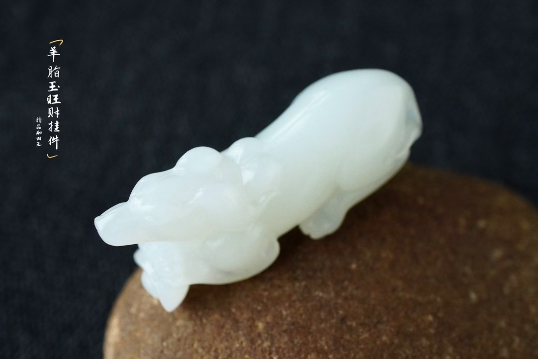 • 和田玉羊脂玉旺財掛件,天然和田玉軟玉