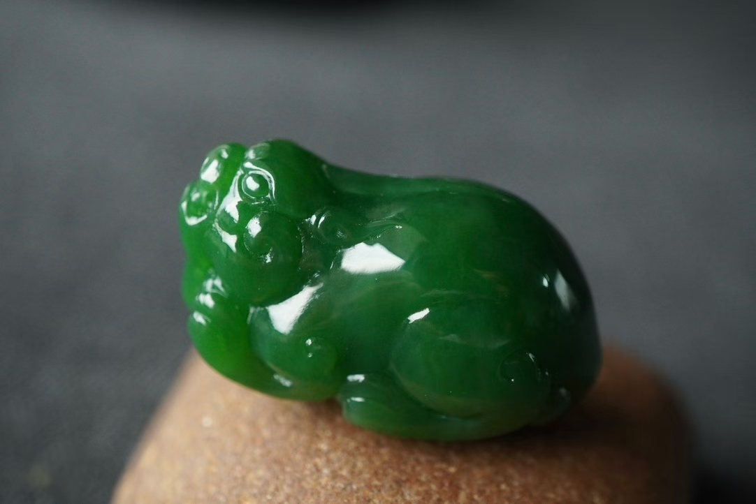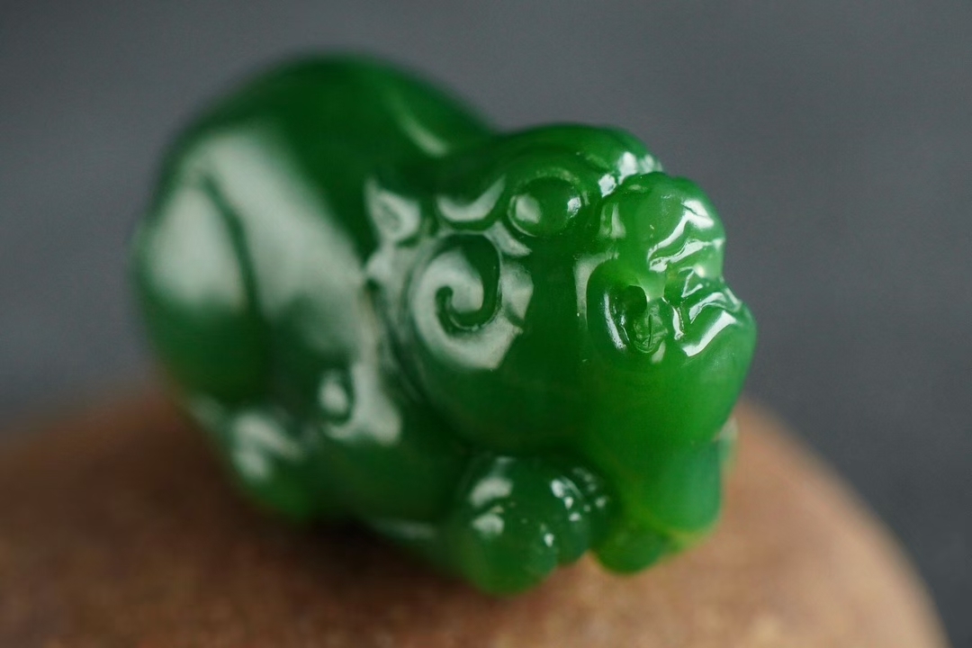 • 和田玉老礦料碧玉濃郁陽綠貔貅掛件,天然和田玉軟玉