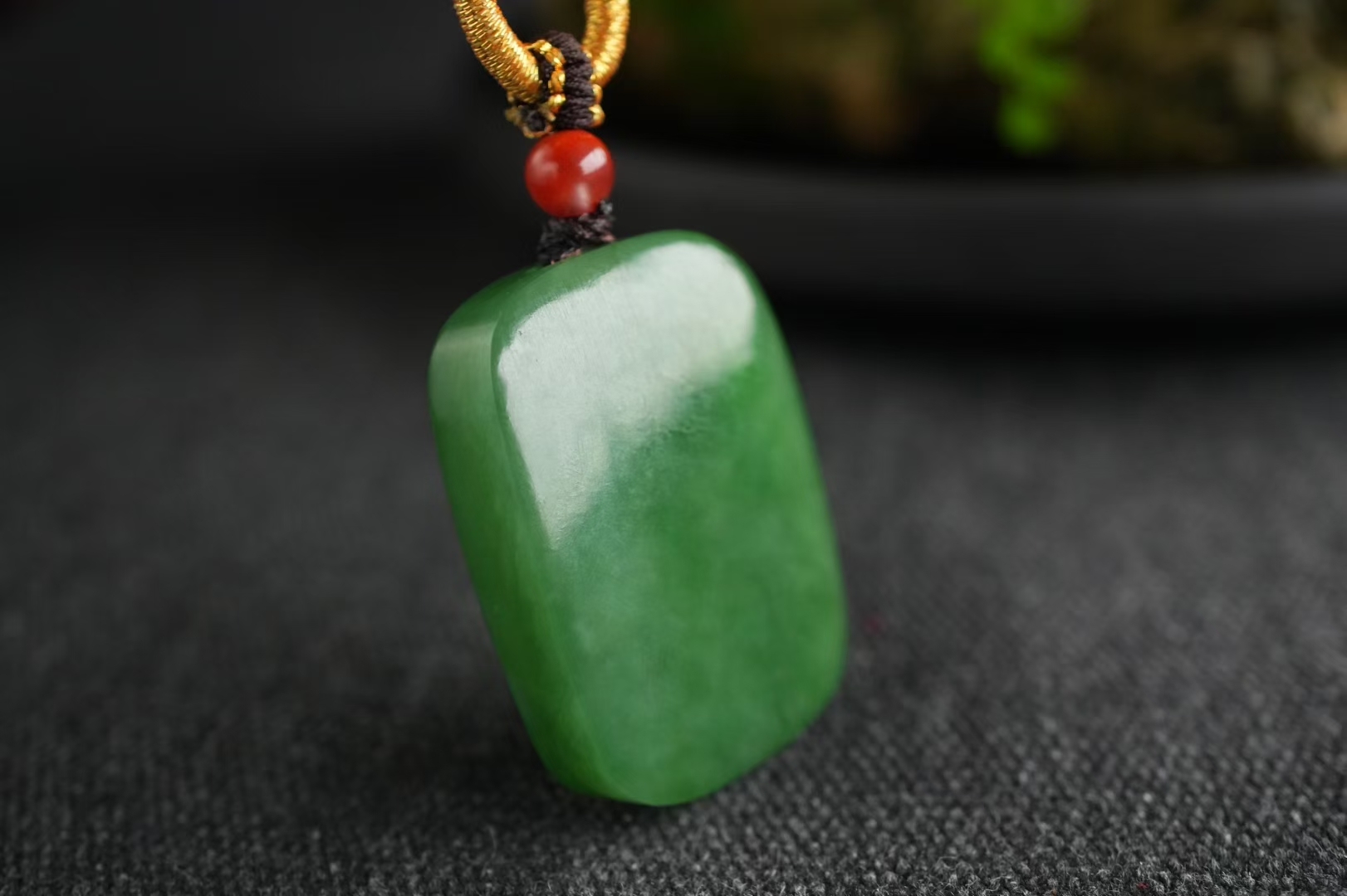 天然和田玉,碧玉老礦料,濃郁果綠色不灰不暗,料子細膩油性十足,肉眼無棉微水線,無裂紋。