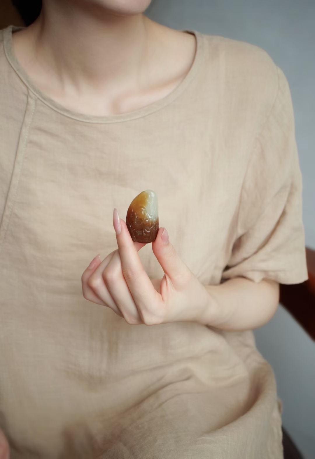 天然和田玉,新疆且末糖白料,糖色由暖糖色過渡為濃郁深邃而神秘的深紅糖色,令得整塊料子增添了不少生動和多樣,別具特色,頗為特別,兩色分明,肉質緊實,玉質細膩油潤,油性極好,過燈乾淨,無雜無裂完美品相,掛件整體隨形造型。