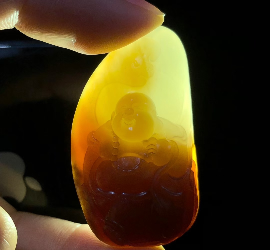 • 和田玉且末糖白料笑口常開彌勒佛掛件,天然和田玉軟玉