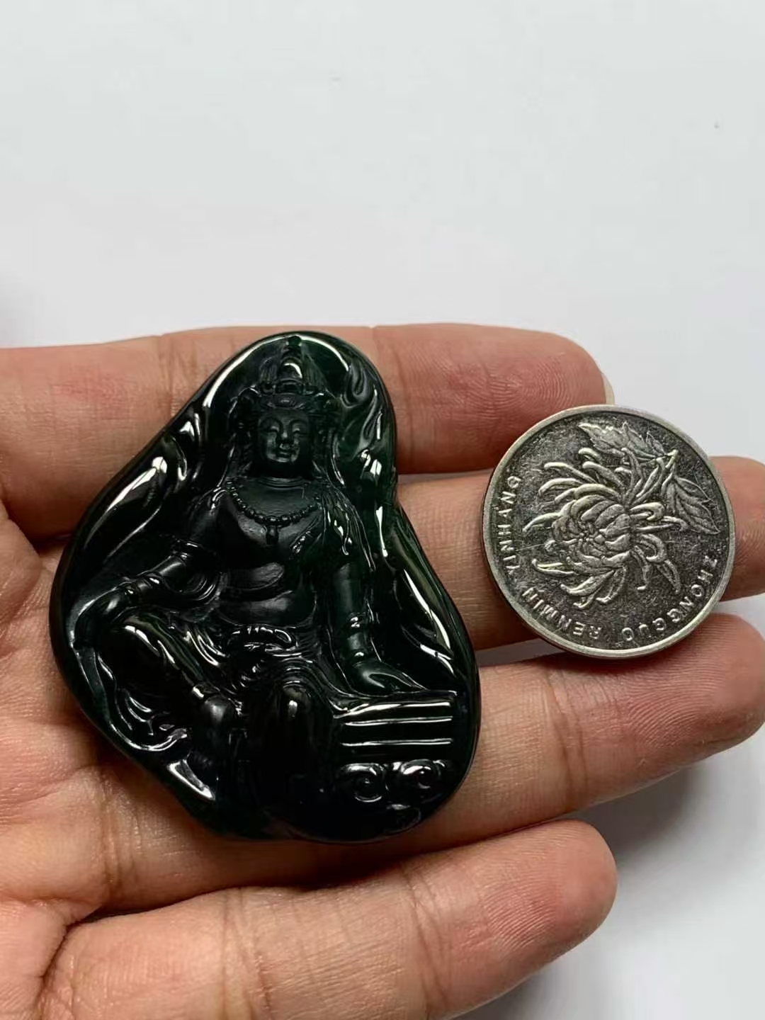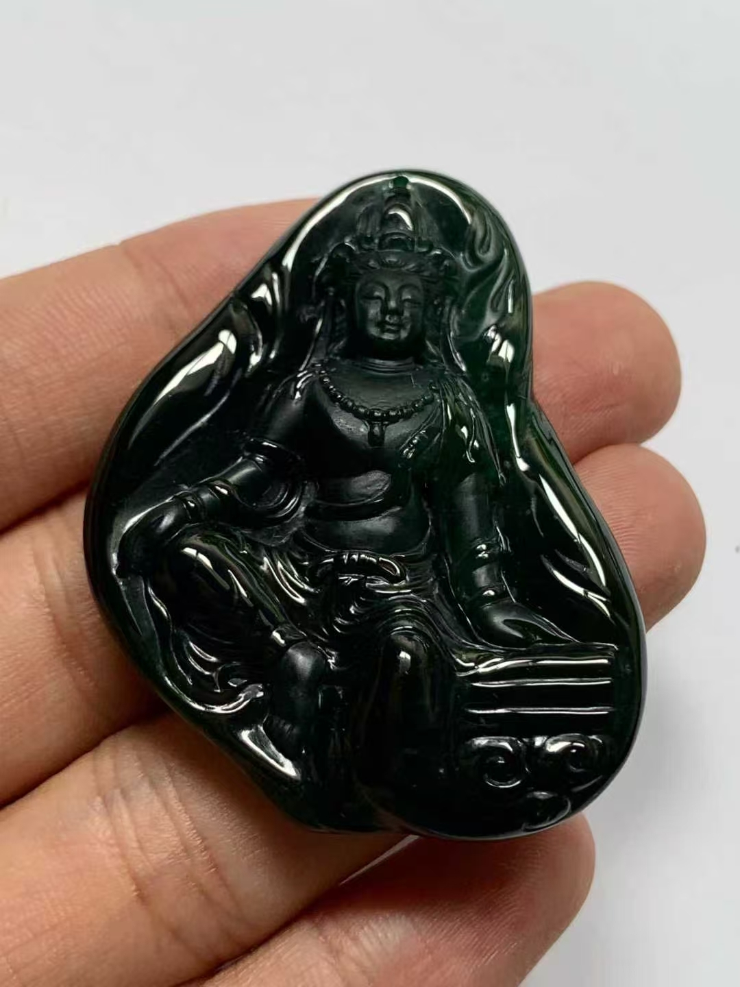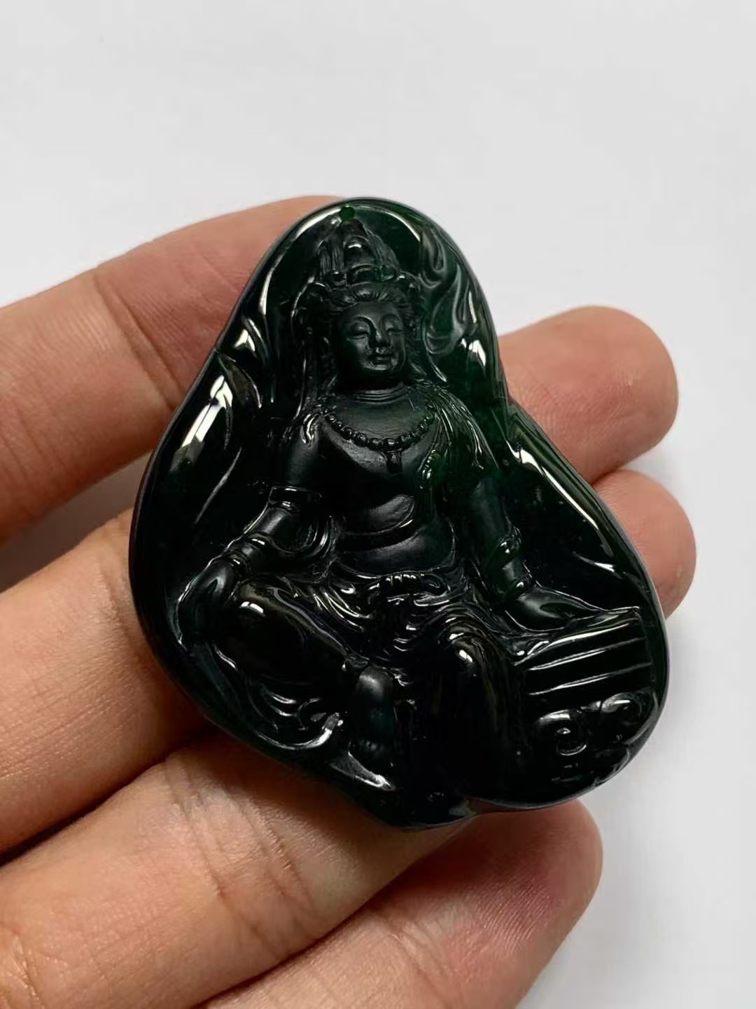 • 翡翠墨翠自在觀音,天然翡翠A玉, 緬甸玉, Jade, Jadeite