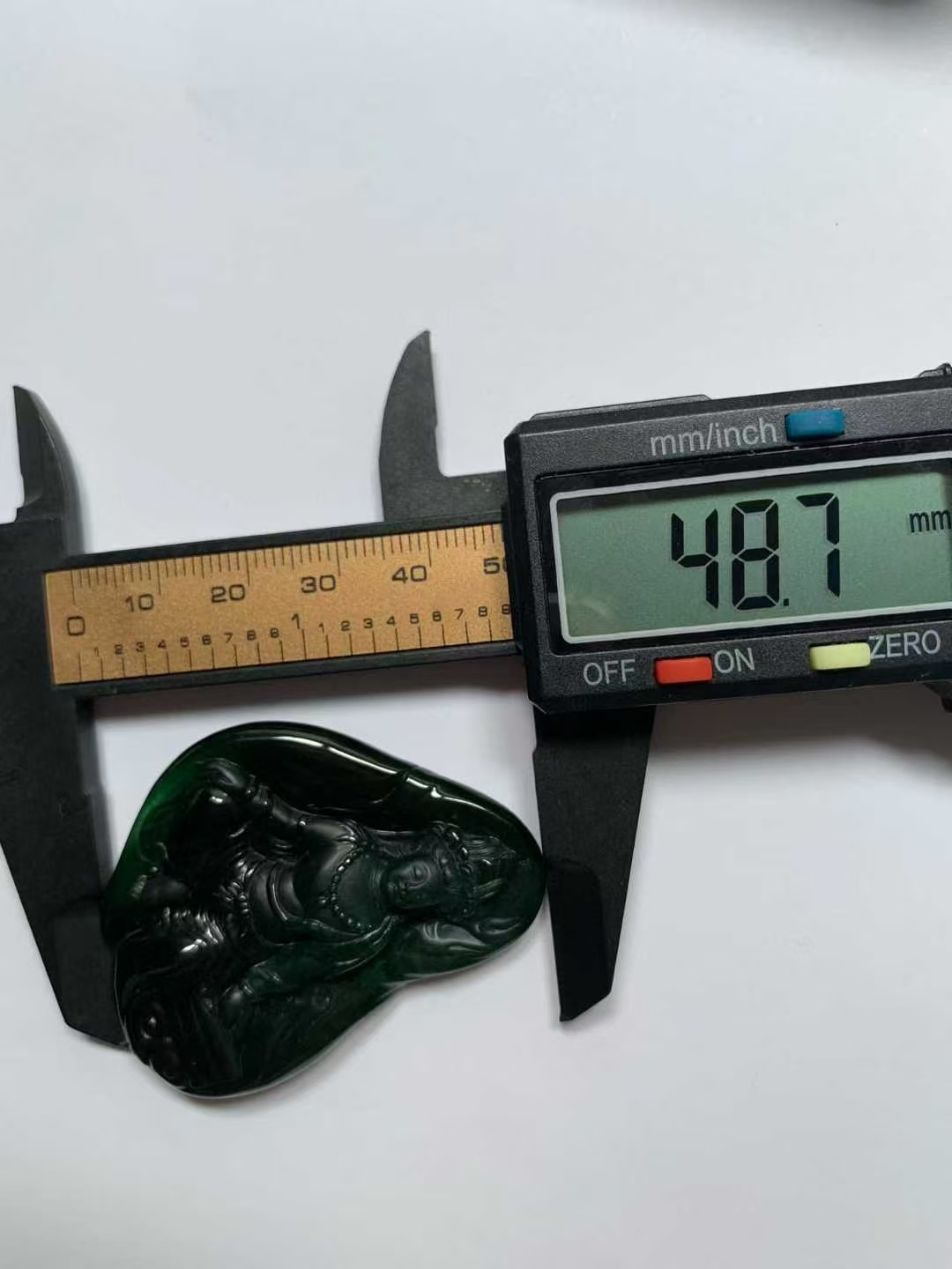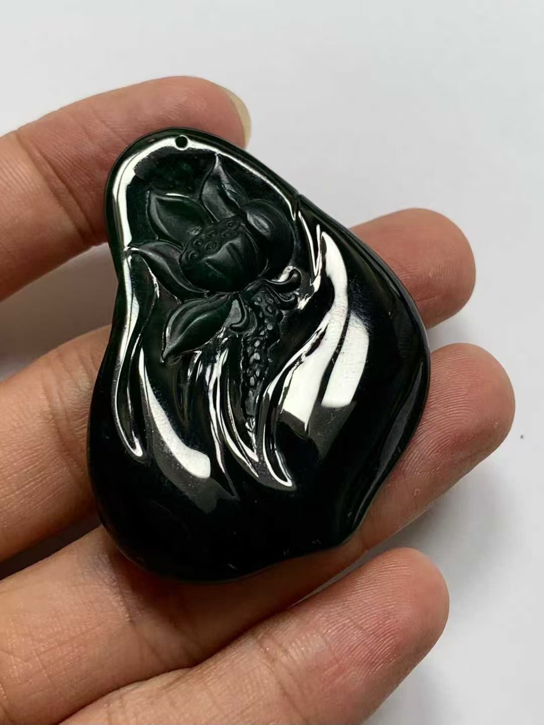 天然翡翠A玉,燈照透綠,完美無紋裂,雕工精美。