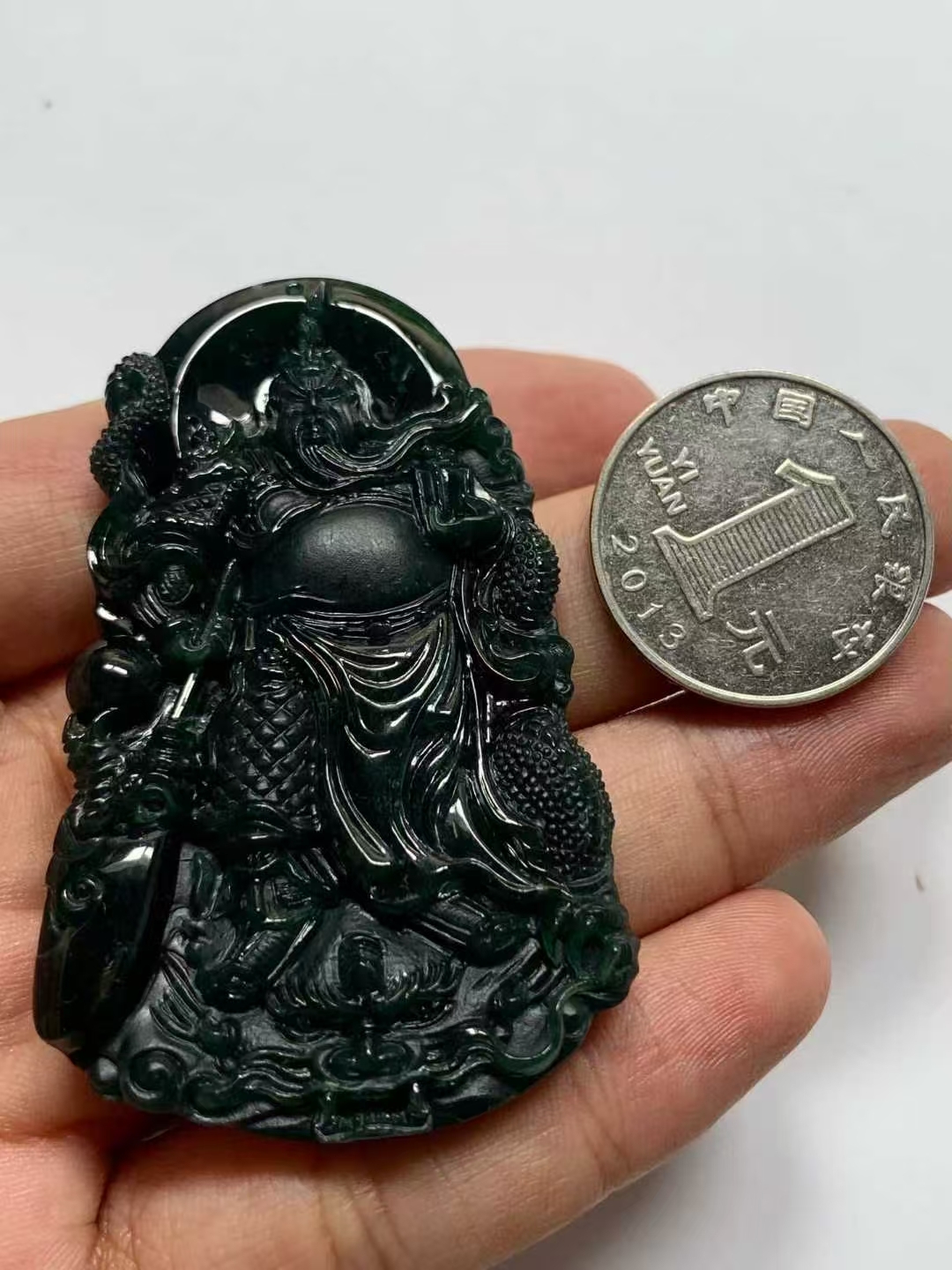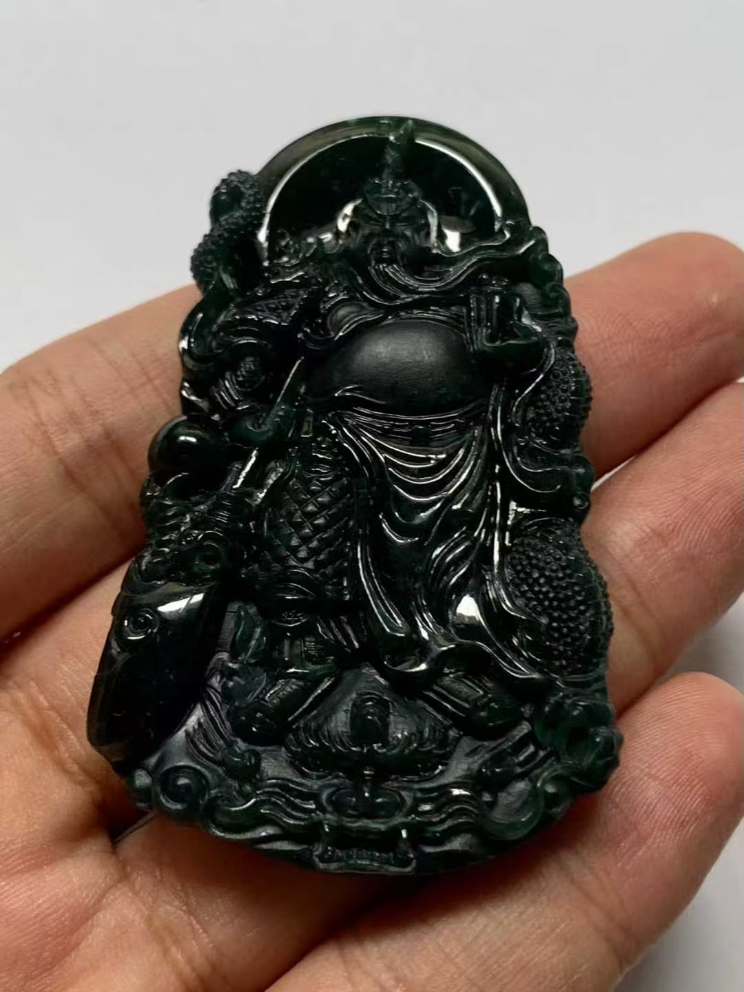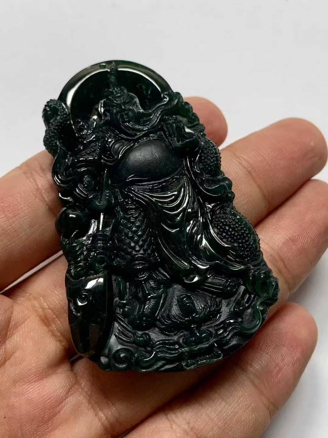 • 翡翠墨翠關公,天然翡翠A玉, 緬甸玉, Jade, Jadeite