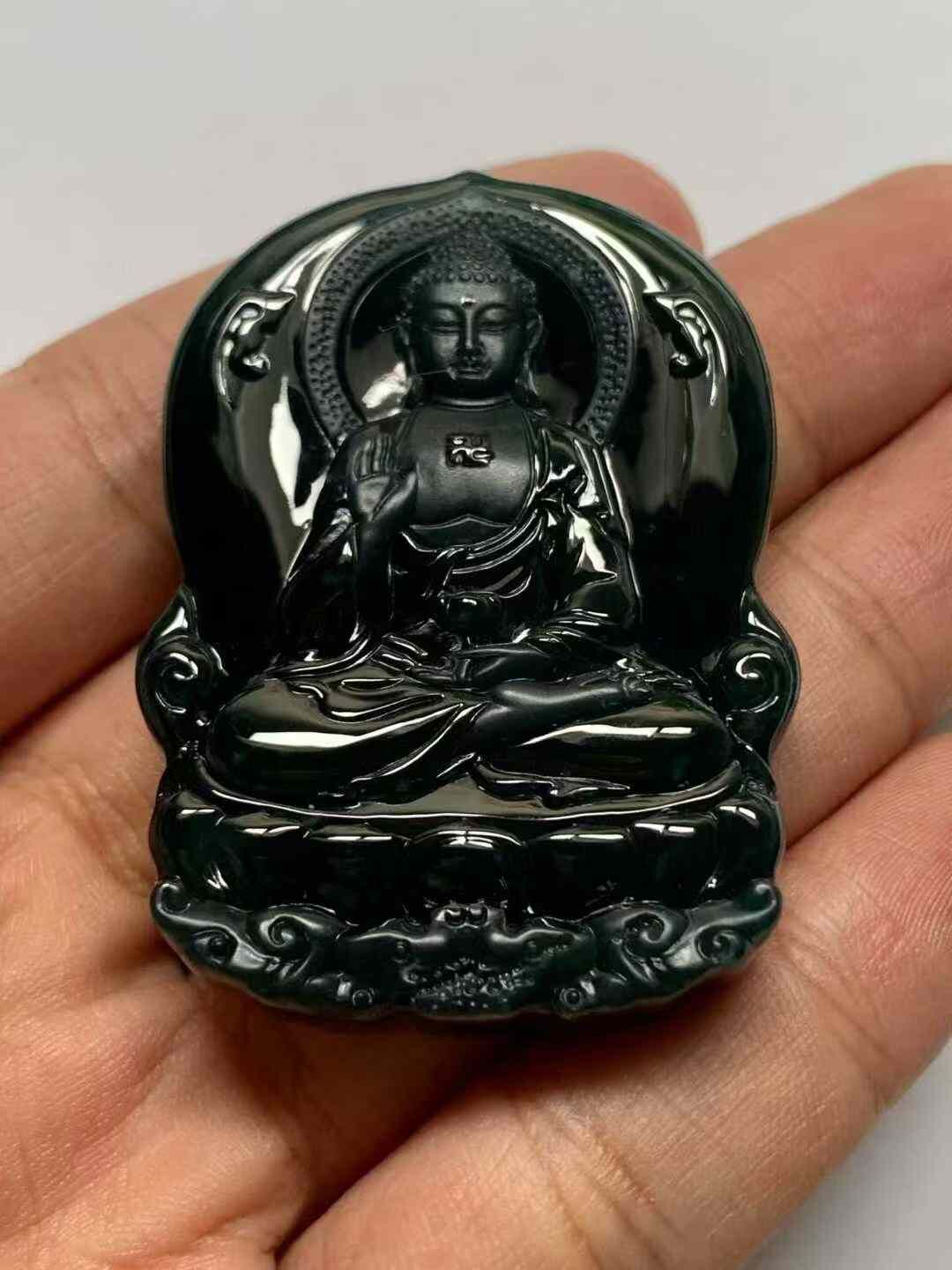 • 翡翠墨翠阿彌陀佛,天然翡翠A玉, 緬甸玉, Jade, Jadeite