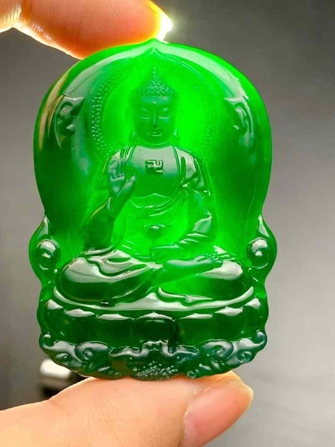 天然翡翠A玉,燈照透綠,完美無紋裂,雕工精美。