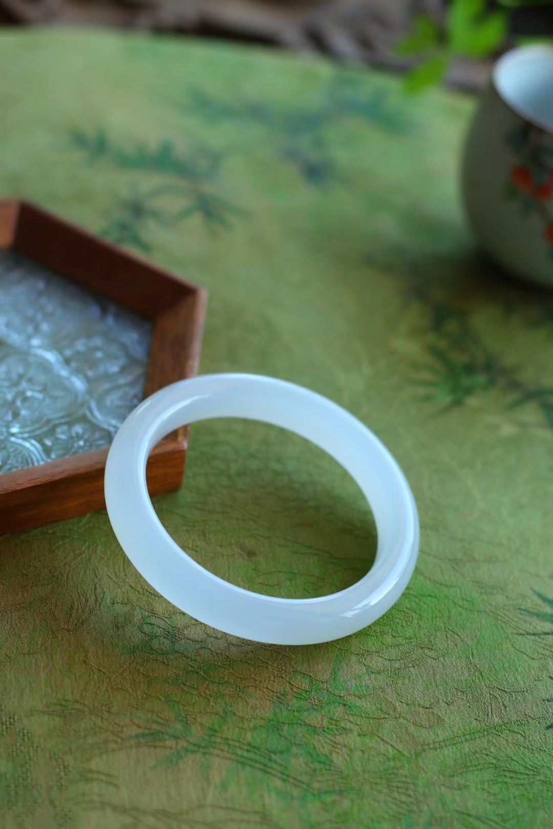 和田玉白玉,乍見之歡,久處仍怦然,色澤水潤晶瑩剔透,一腕清透,藏在心底的白月光,實物更美,推薦自留。