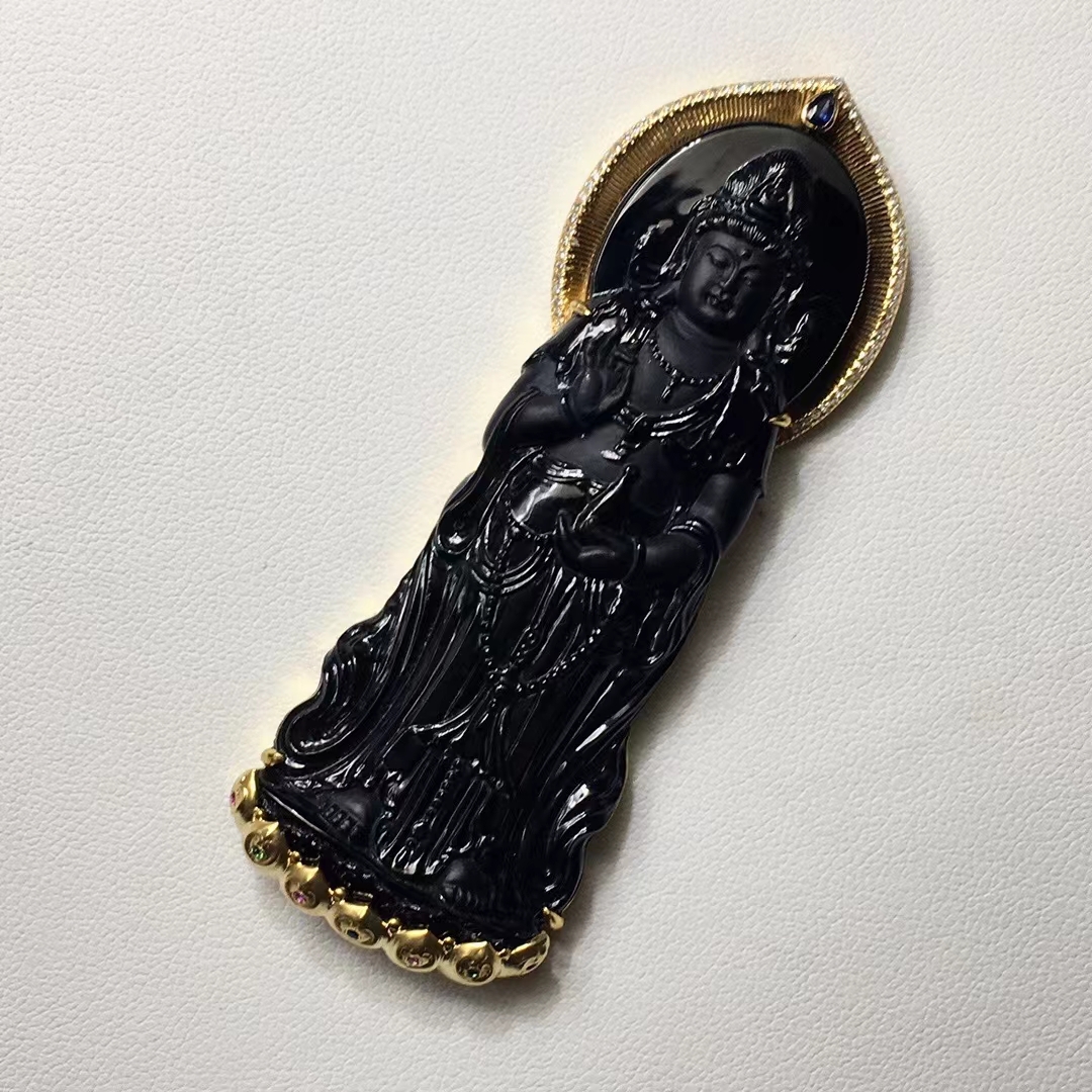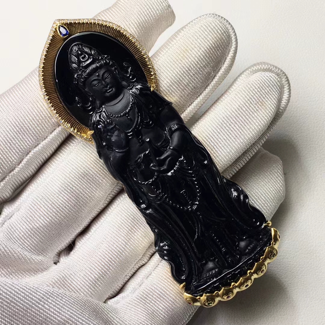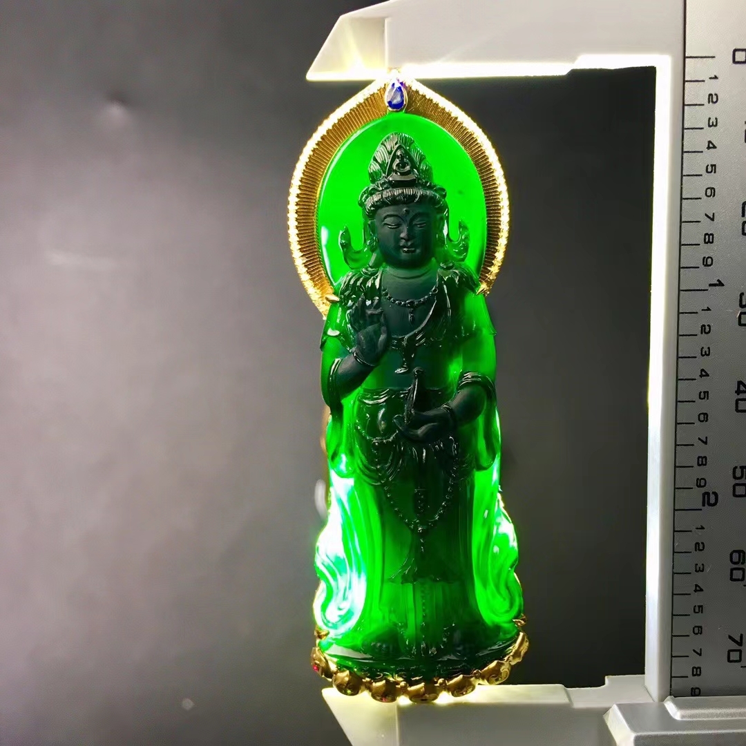 • 墨翠南海觀音,天然翡翠A玉, 緬甸玉, Jade, Jadeite