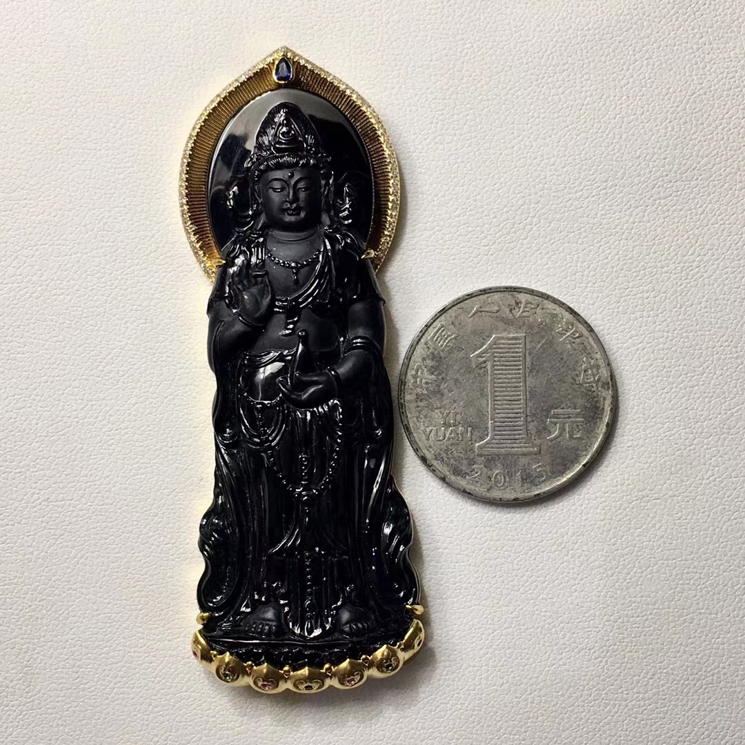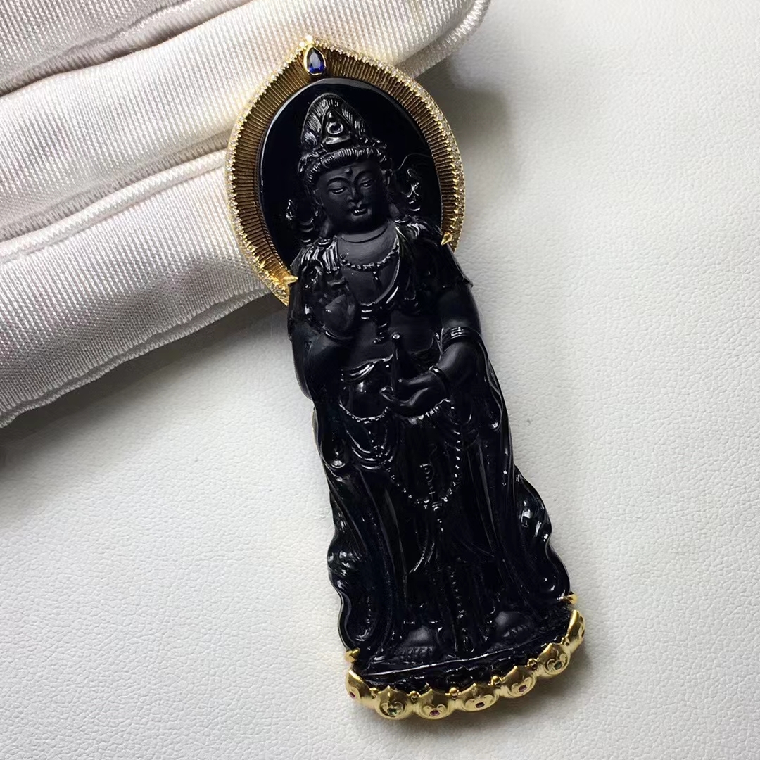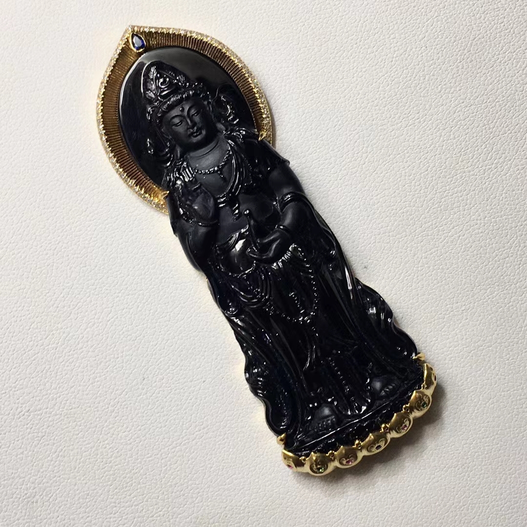 • 墨翠南海觀音,天然翡翠A玉, 緬甸玉, Jade, Jadeite