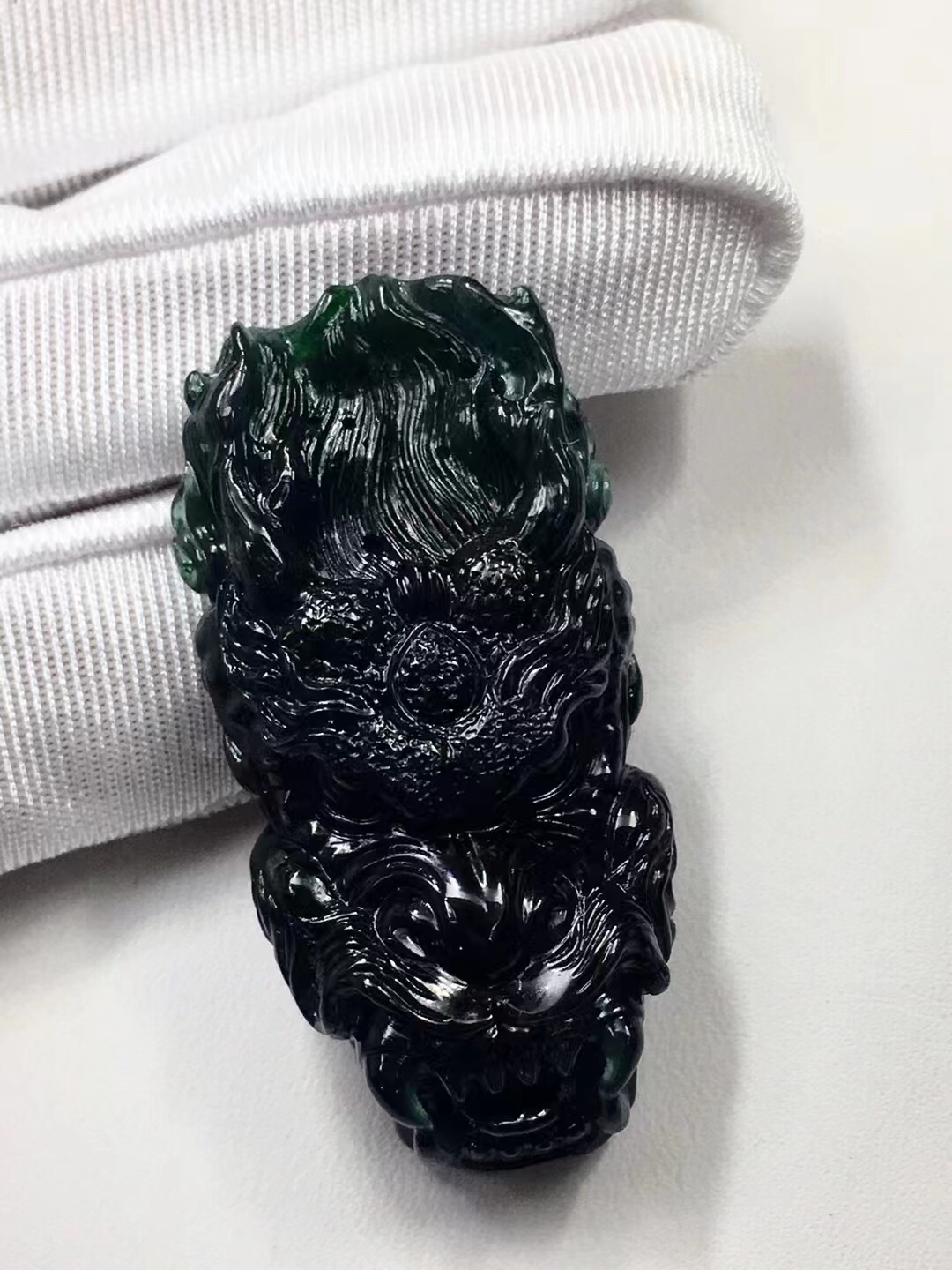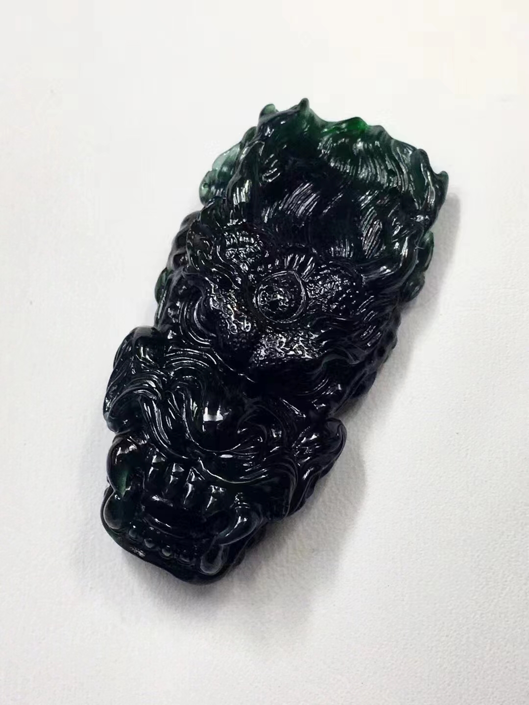 • 墨翠龍頭霸業,天然翡翠A玉, 緬甸玉, Jade, Jadeite