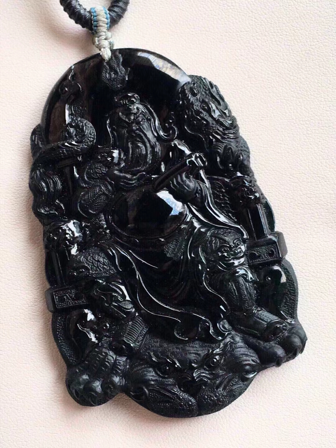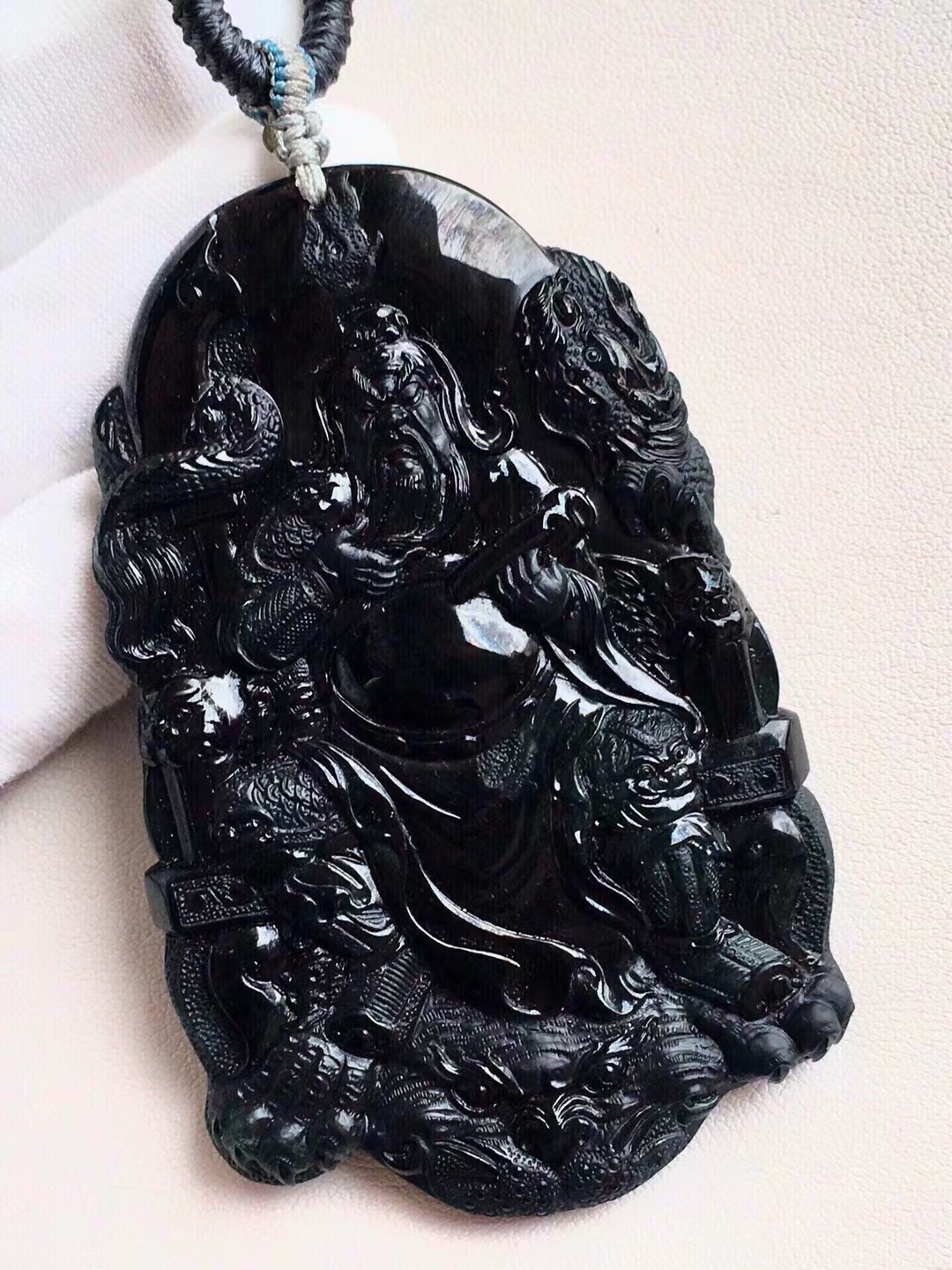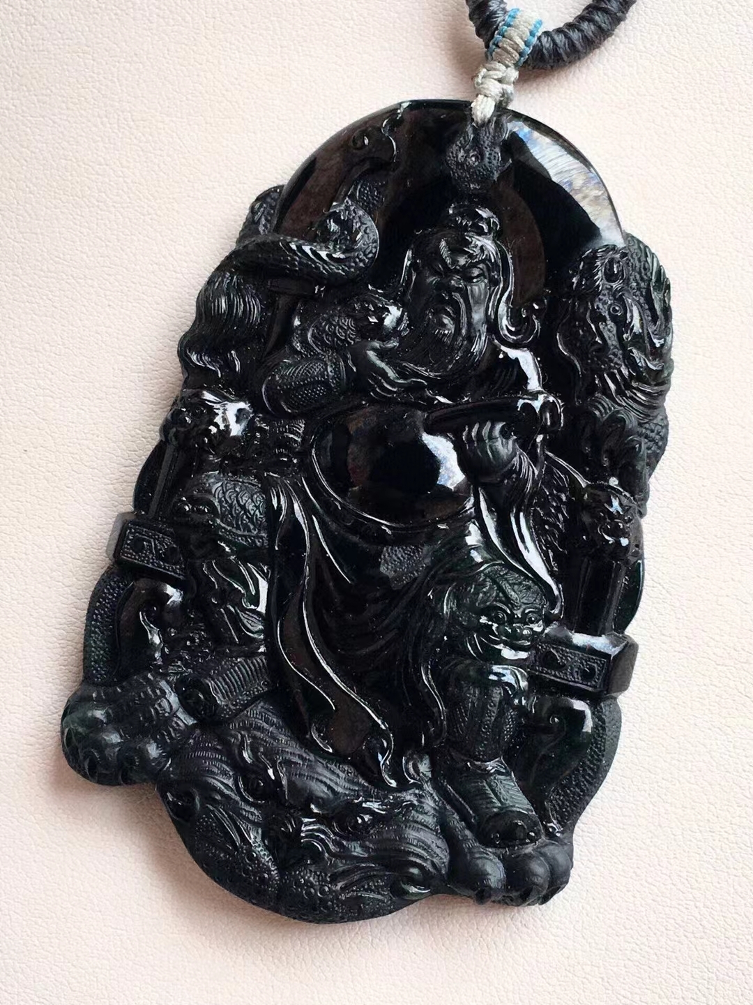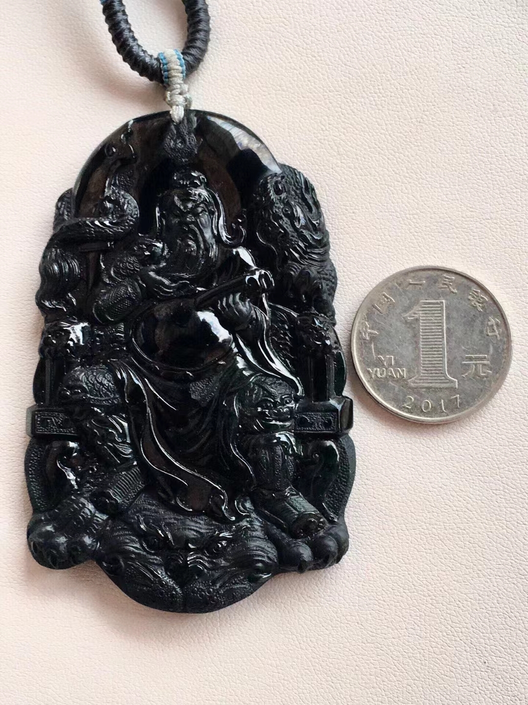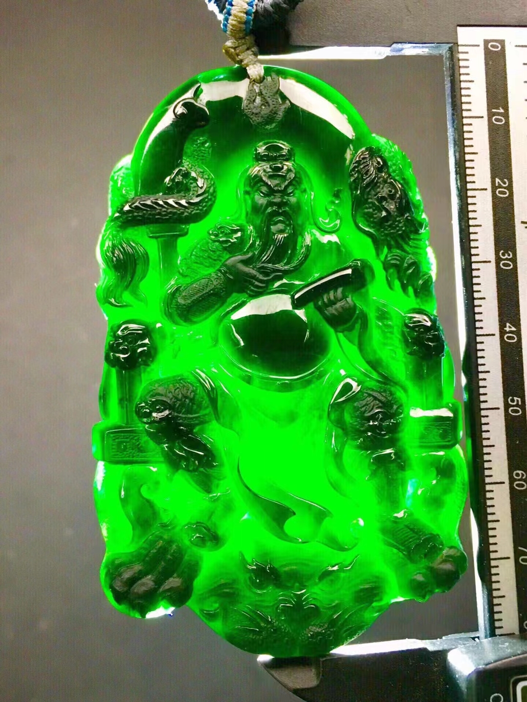 • 墨翠忠義關公,天然翡翠A玉, 緬甸玉, Jade, Jadeite