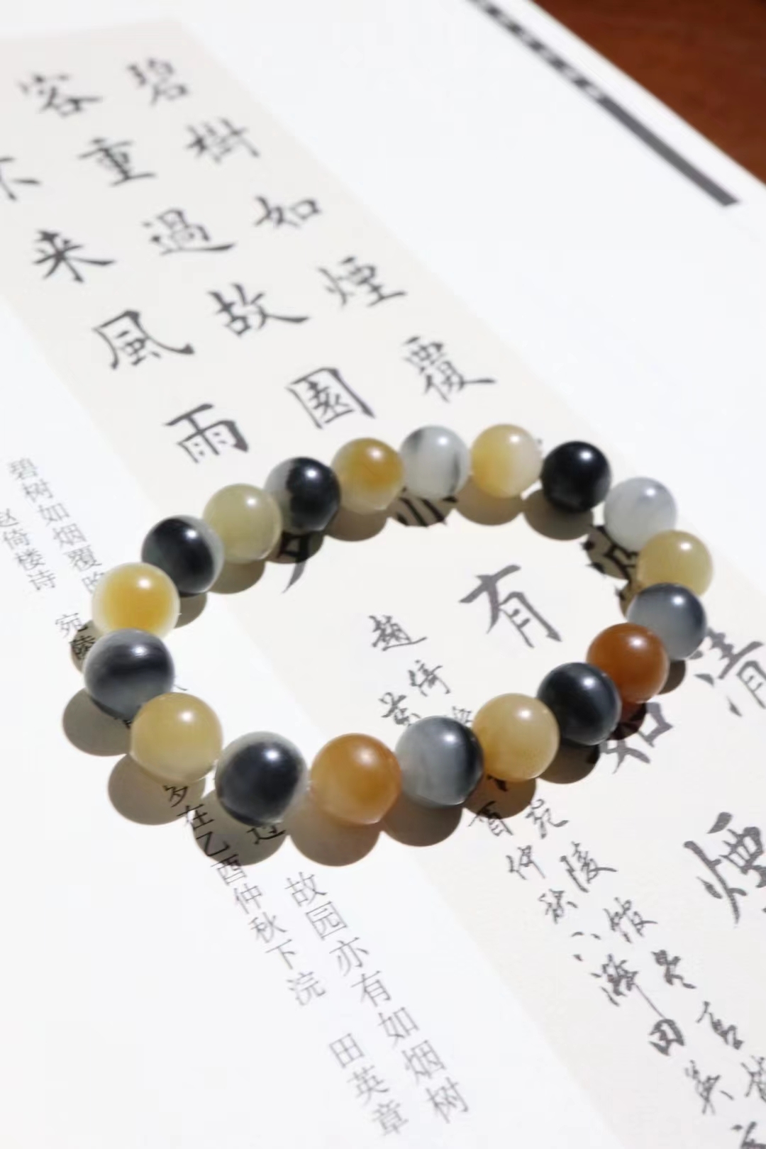 收藏級,和田玉新疆料樓蘭手串,這條手串特別推薦,珠子是從一千多顆珠子裡挑出來的貨頭,品質非常好,青花意境分明,糖玉又非常鮮亮,高密度,高脂粉,高油性,啞光口紅溫潤內斂,顆顆精選無紋裂,樓蘭風中的天花板級品質。