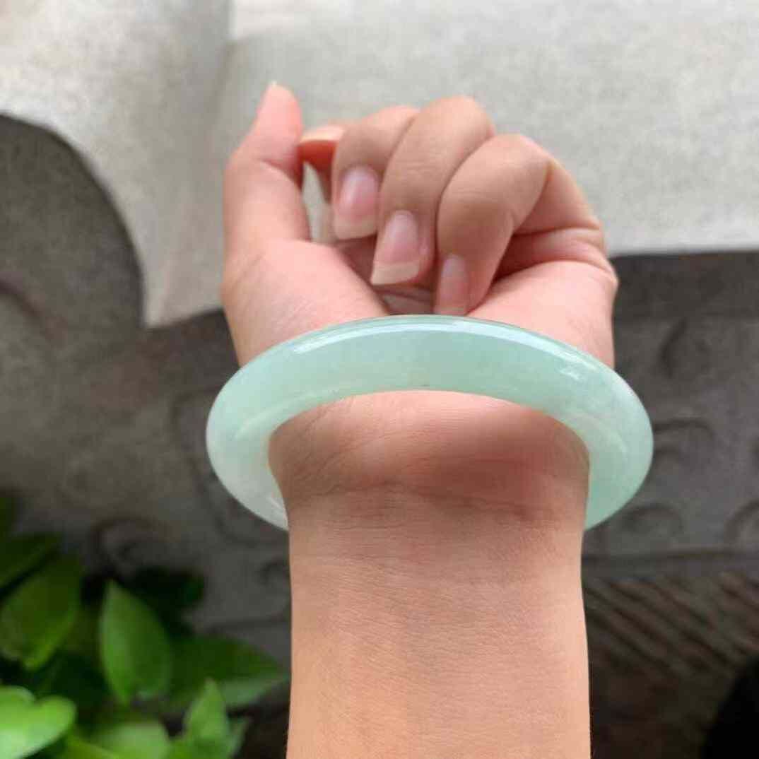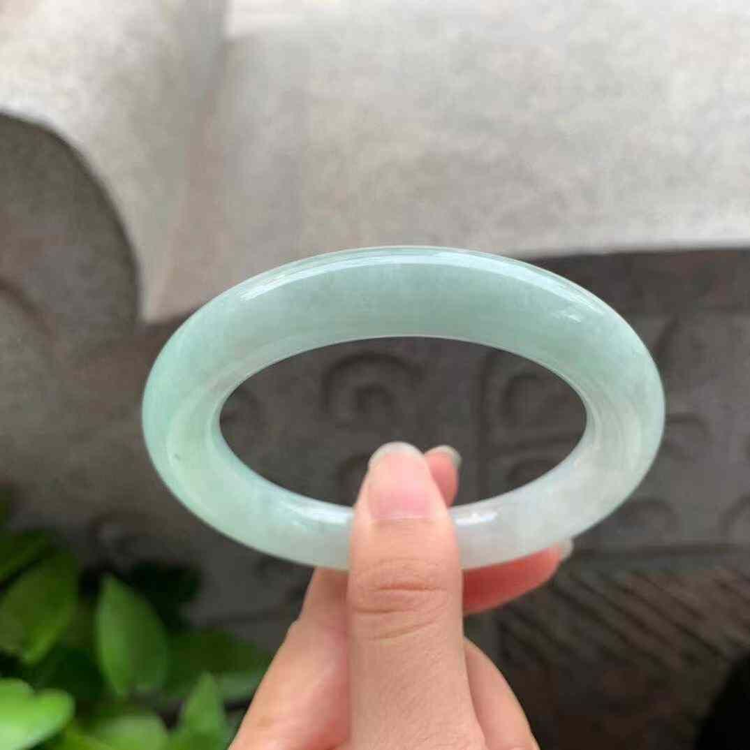 1152334 54.8mm翡翠冰晴綠圓條手鐲