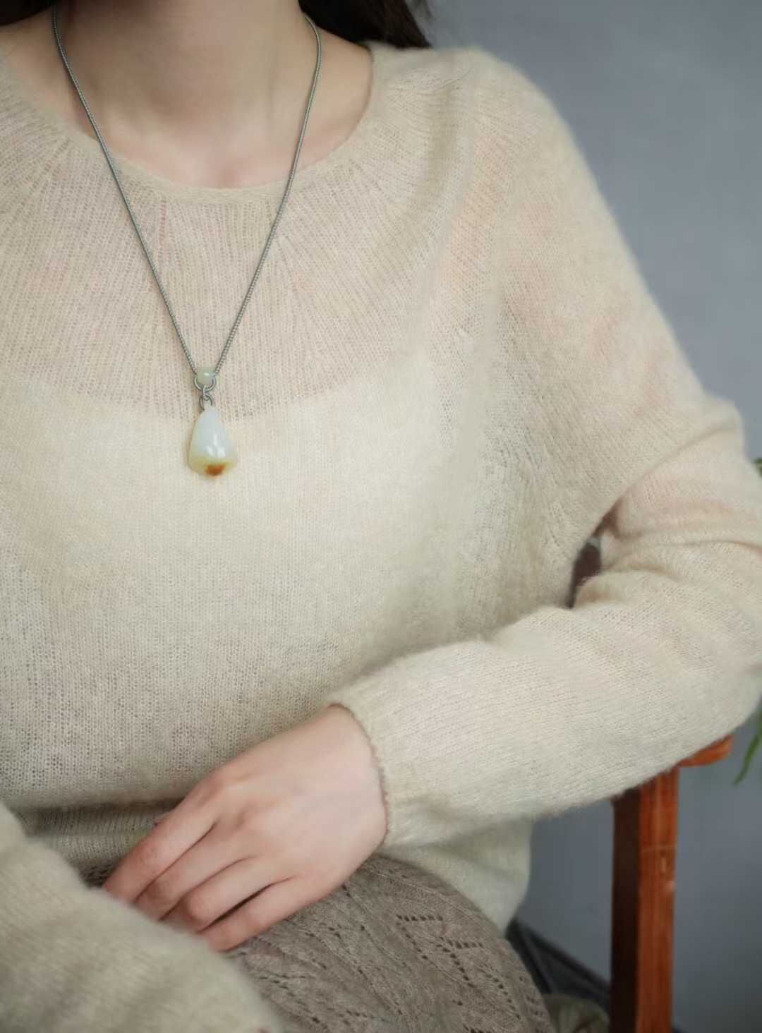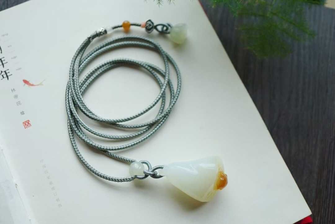 搭配純手工制作繩,和田玉蓮蓬作尾墜,純銀小如意做背雲,純糖圓珠,白玉圓珠,純銀小配件,和田玉路路通點綴,佩戴典雅大方。