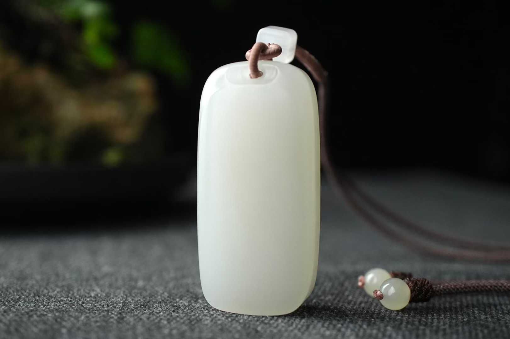 • 和田白玉平安無事牌掛件,天然和田玉軟玉