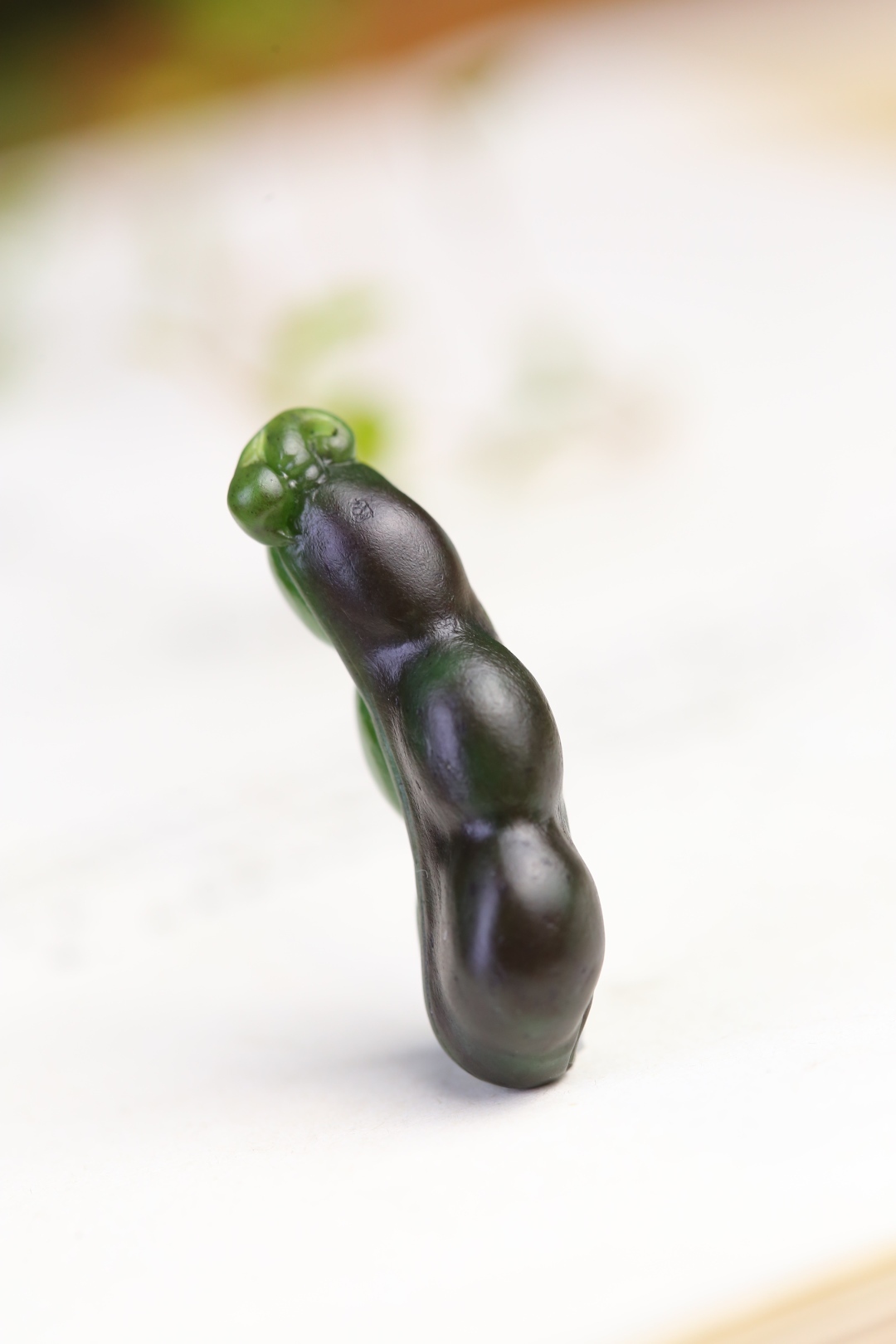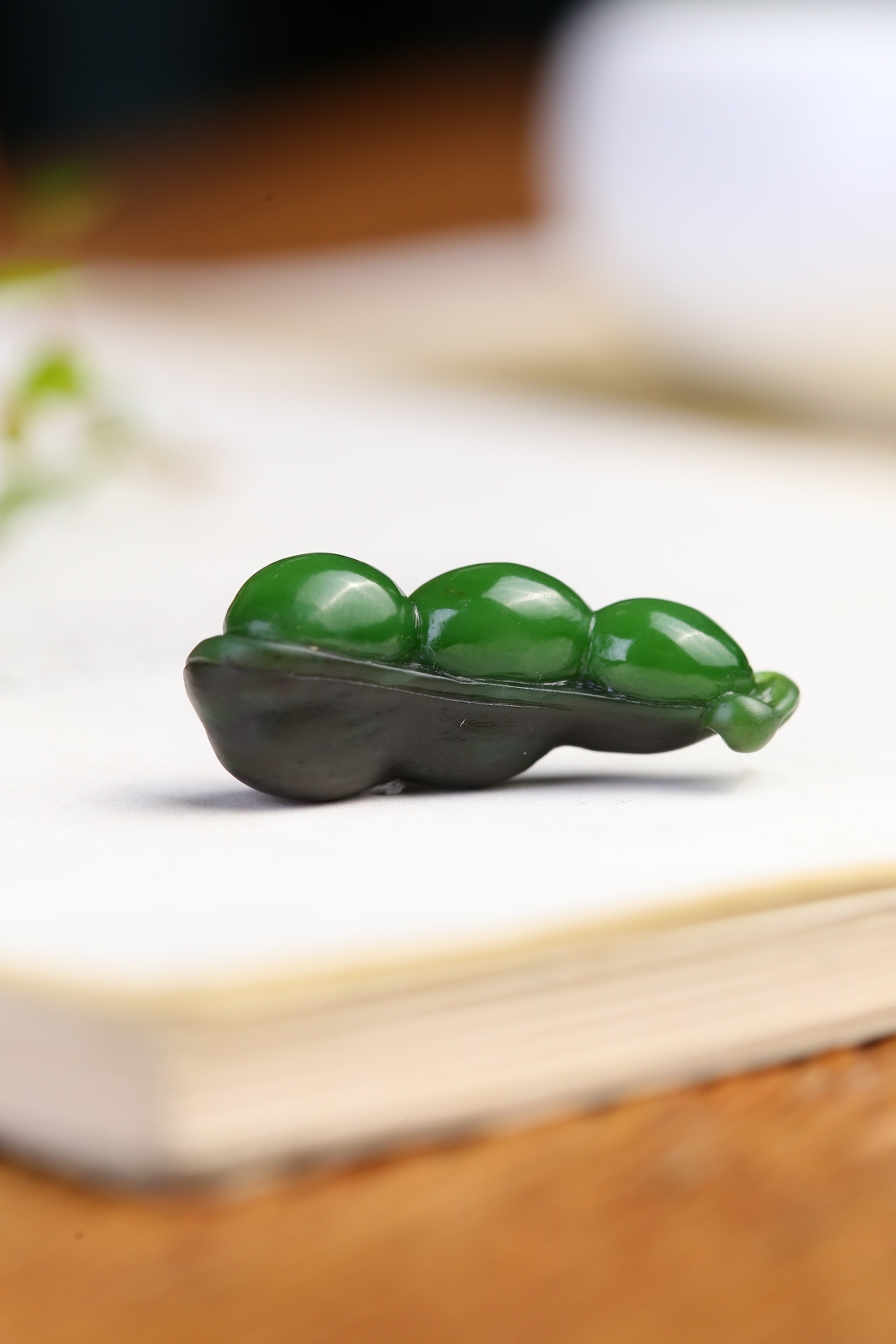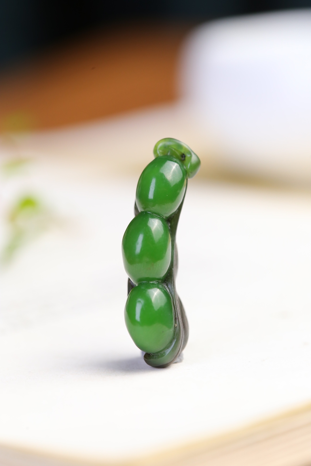 天然和田玉碧玉,玉質細膩油潤,整體飽滿圓潤,品相一流!福豆,又叫四季豆,表示四季平安,四季發財,多子多福。