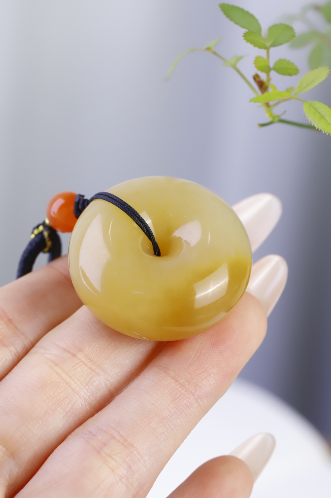 天然和田玉且末糖,成色漂亮,質地細膩緊實,溫潤而澤,光潔油潤,圓潤豐滿,氣韻傳神。雅致大氣,平安扣佑平安,賦予平安無事的意念隨心如意,無事無憂。
