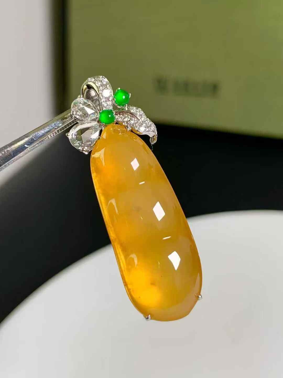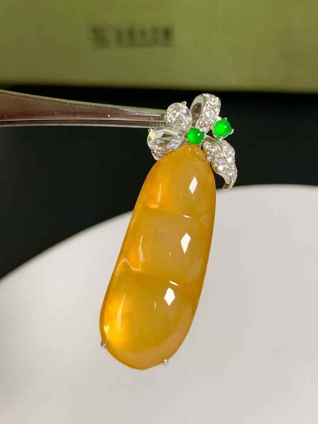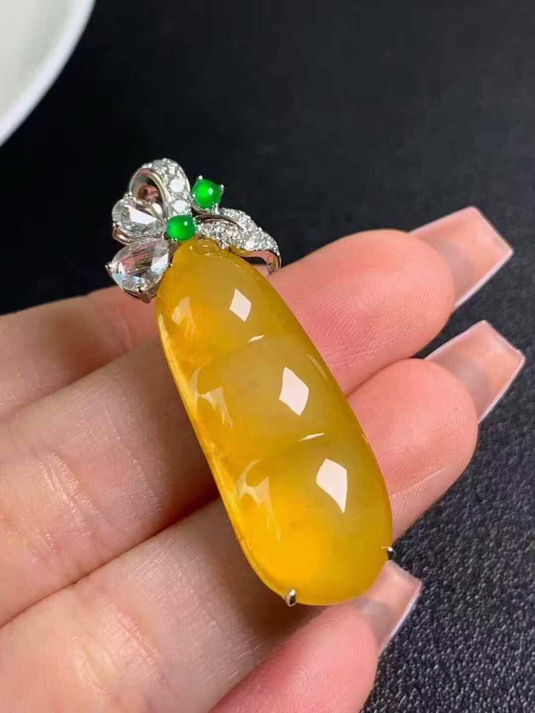 • 翡翠黃翡福豆吊墜,天然翡翠A玉, 緬甸玉, Jade, Jadeite