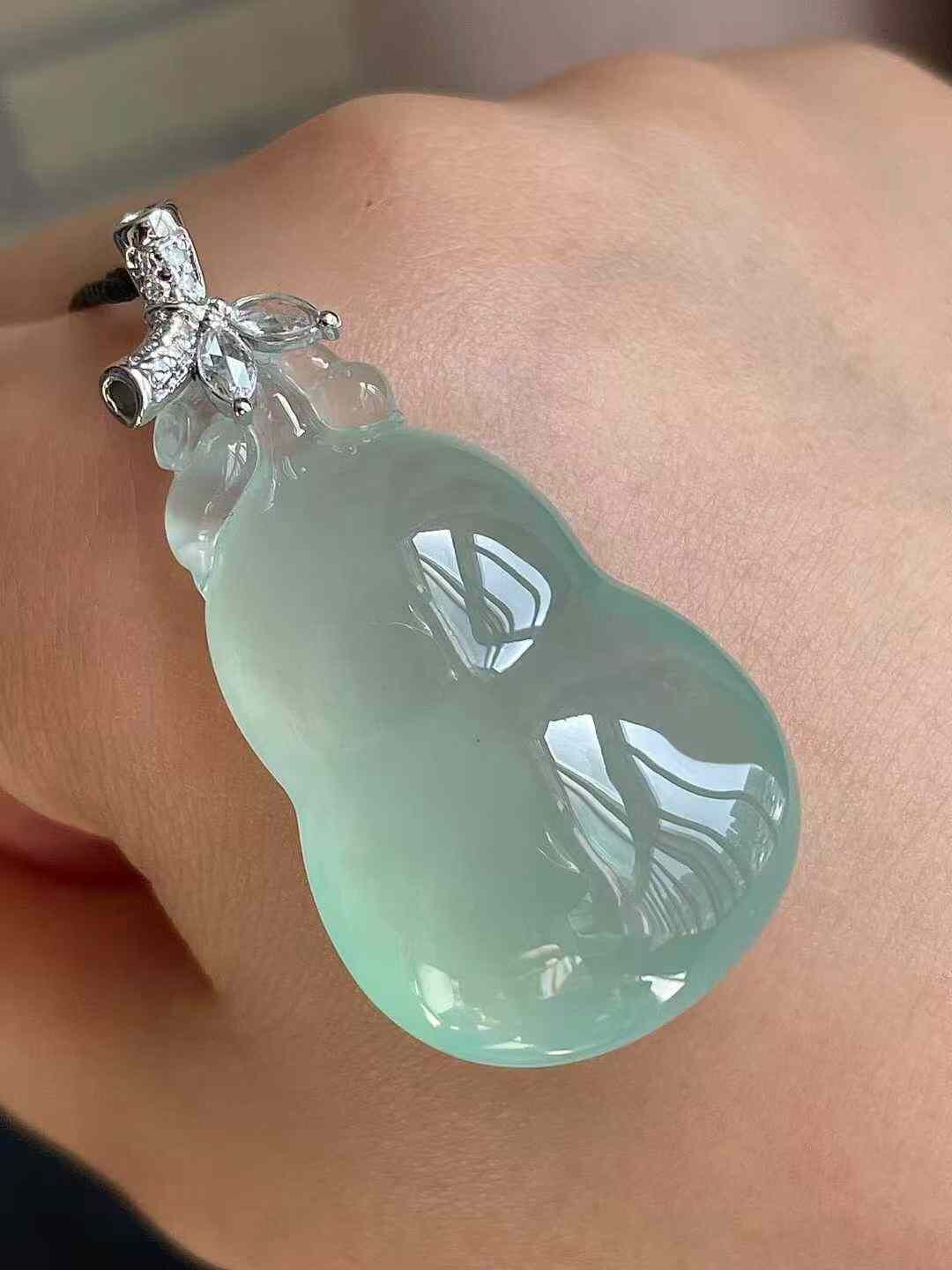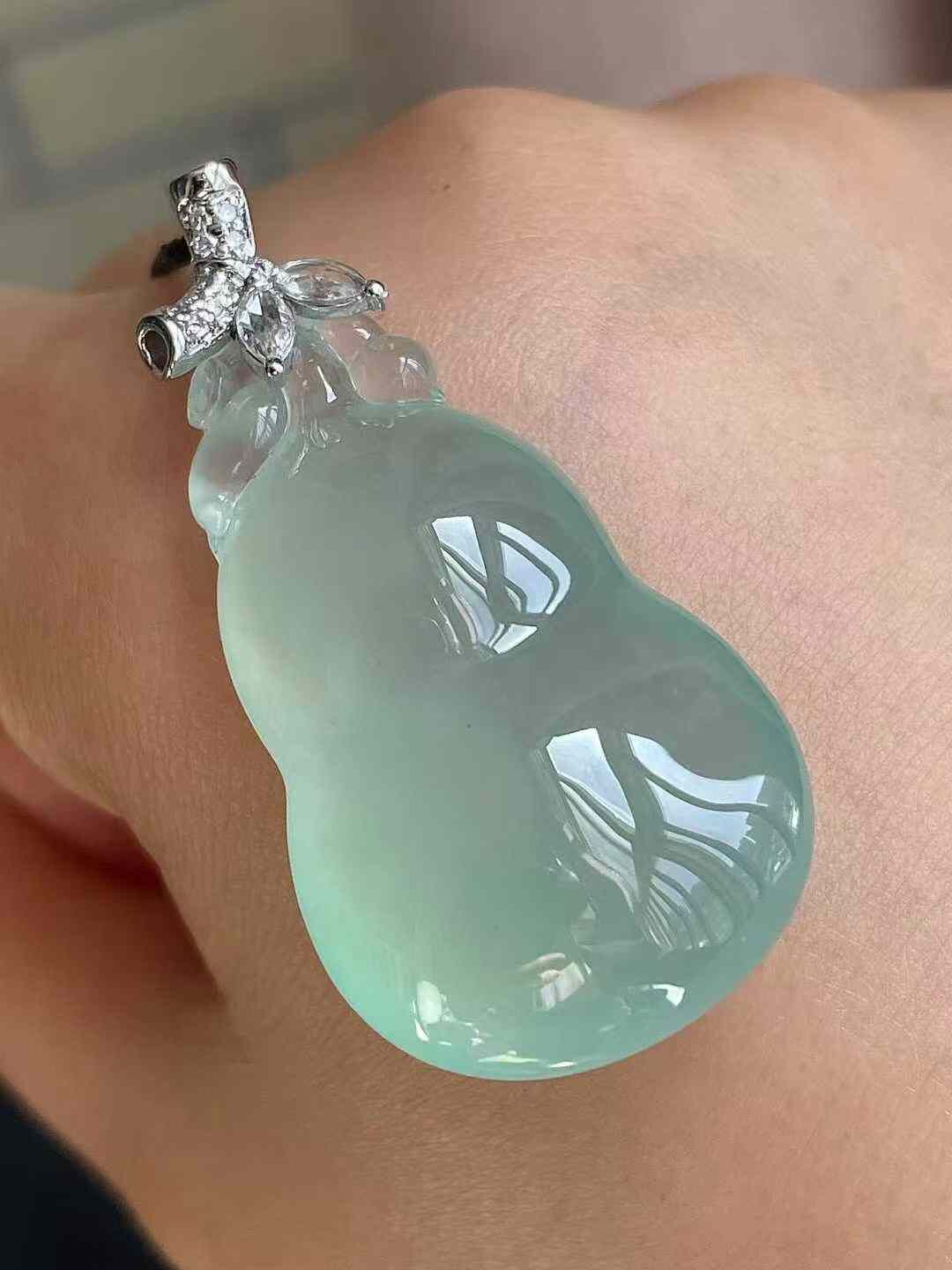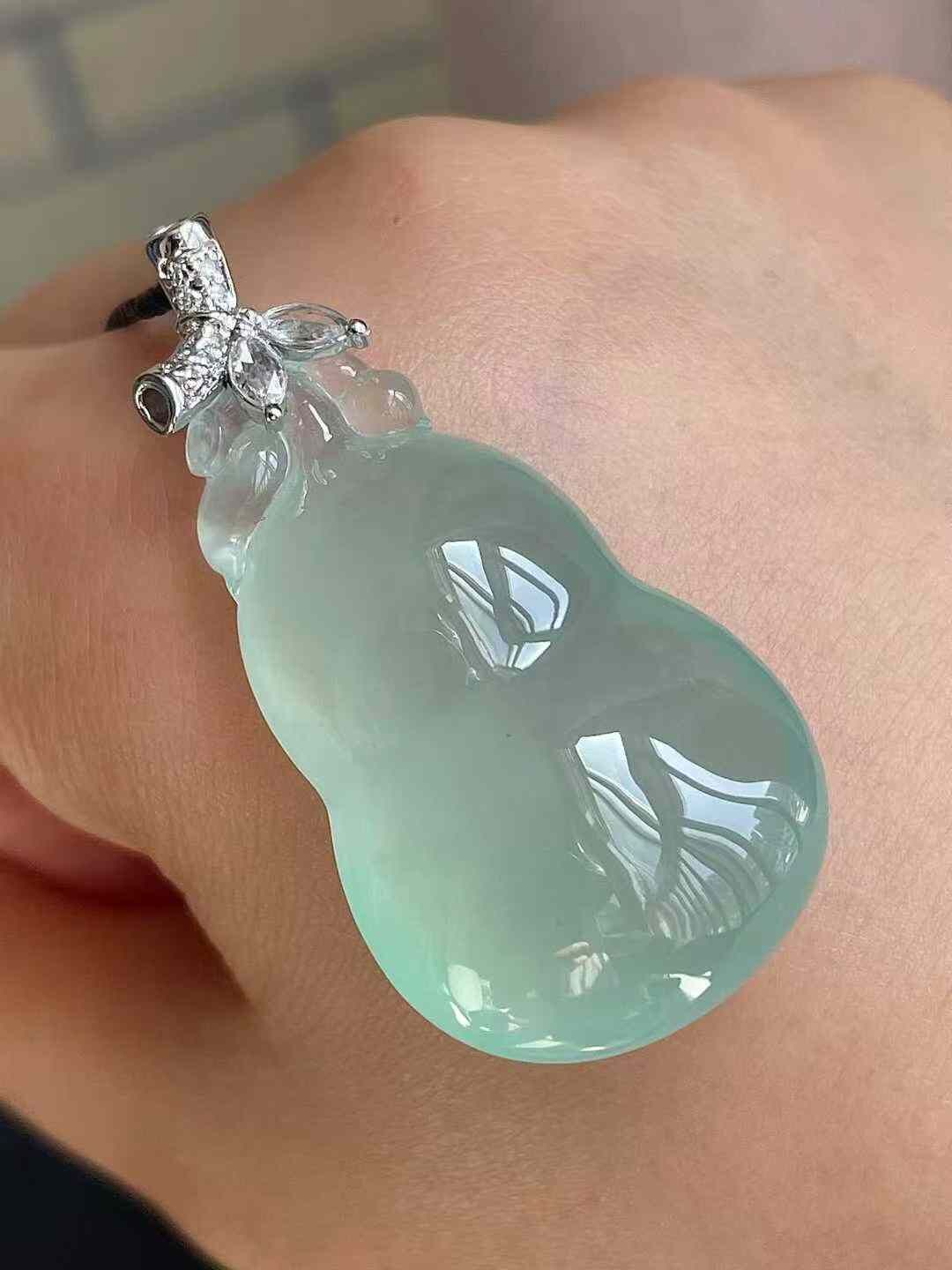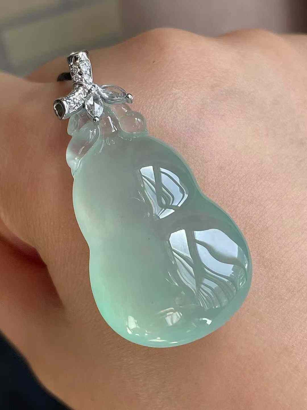 • 翡翠高冰葫蘆吊墜,天然翡翠A玉, 緬甸玉, Jade, Jadeite