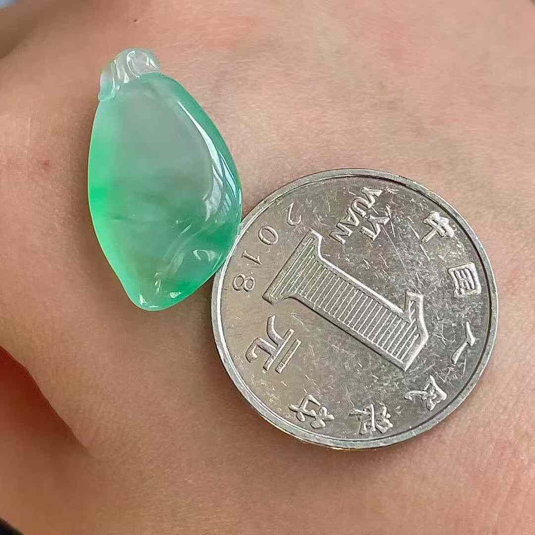 • 翡翠高冰飄綠福瓜吊墜,天然翡翠A玉, 緬甸玉, Jade, Jadeite