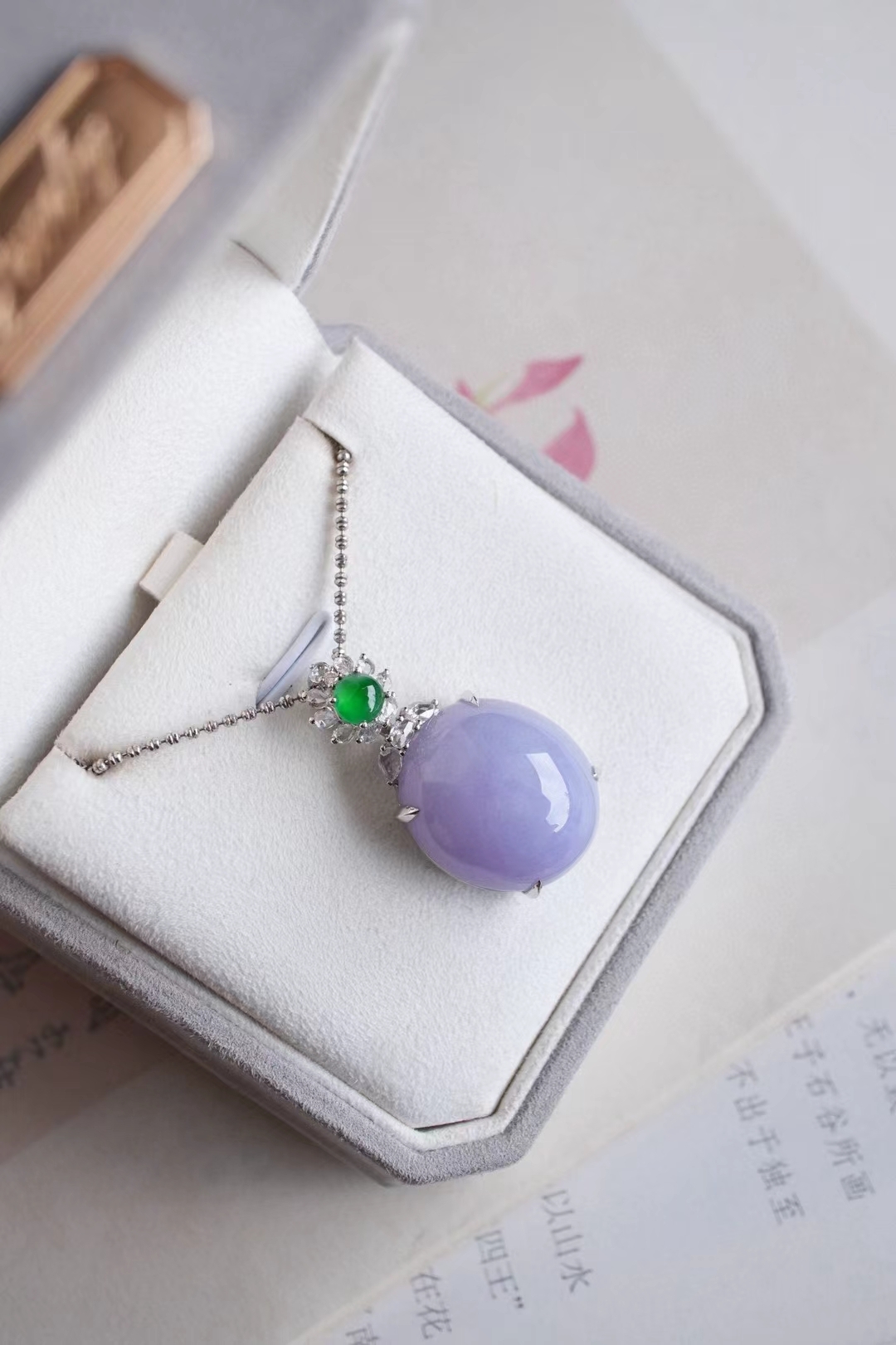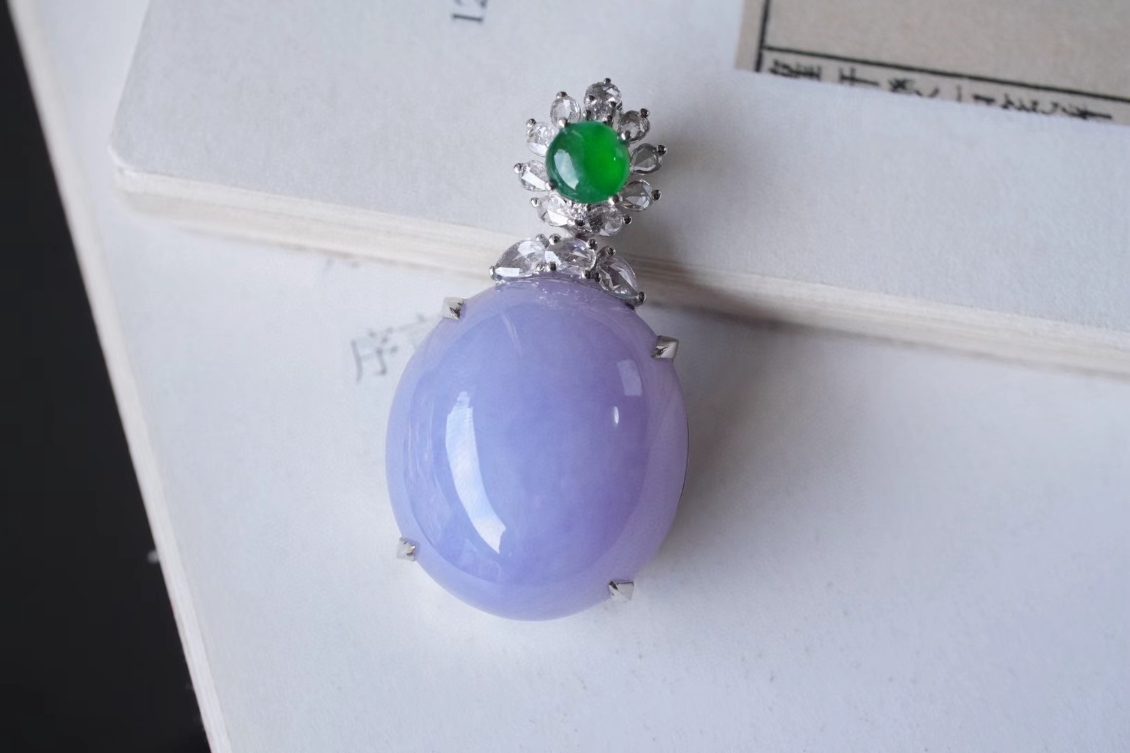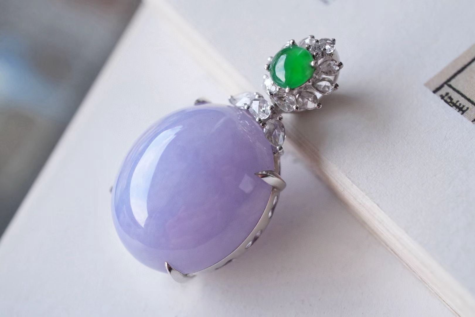 • 翡翠冰紫羅蘭鴿子蛋吊墜,天然翡翠A玉, 緬甸玉, Jade, Jadeite